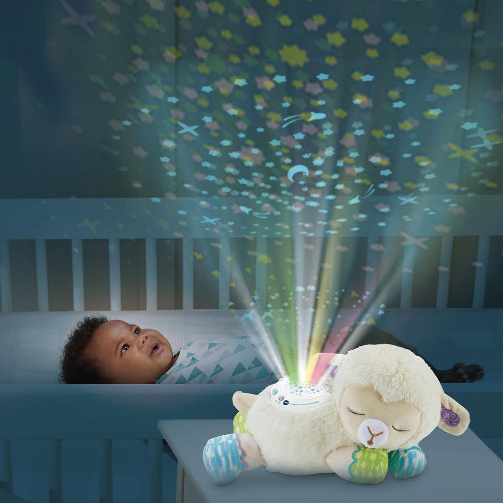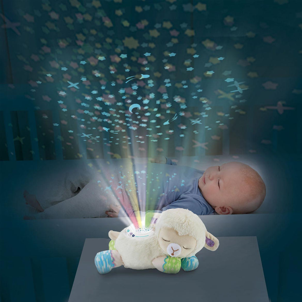 Druk op de toetsen en luister naar lieve bedtijdverhaaltjes, gezongen liedjes, natuurgeluiden en melodietjes. De mooie projecties op het plafond en het licht dat verandert van kleur zorgen ervoor dat de baby rustig in slaap kan vallen. De geluidssensor activeert rustgevende muziek en geluiden wanneer de baby huilt en met de verstelbare tijdklok kun je zelf aangeven hoe lang het Magisch Droomschaapje speelt.