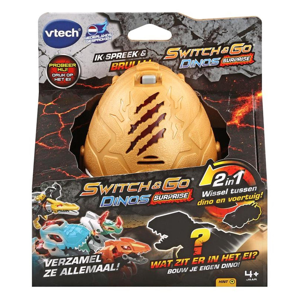 Open het verrassingsei en bouw je eigen dino! Transformeer de T-Rex, Triceratops of de Pteranodon eenvoudigweg naar een supercool voertuig. Druk op de actietoets om heftige reacties te horen en coole lichteffecten te activeren. Laat het avontuur beginnen en verzamel ze allemaal!