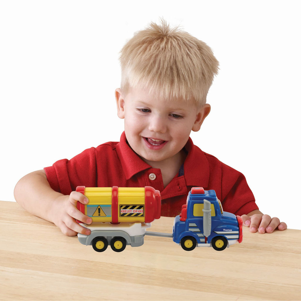 Rijden en leren met de Toet Toet Auto's! Druk op de knipperende gezicht-toets om geluidseffecten, vrolijke zinnetjes en gezongen liedjes te horen. Druk op de actietoets om de uitlaat te bewegen en grappige geluidjes te horen. Kom mee en ga samen met Thomas Tankwagen de brandstof leveren! . Rijden en leren met de Toet Toet Auto's! Druk op de knipperende gezicht-toets om geluidseffecten, vrolijke zinnetjes en gezongen liedjes te horen. Druk op de actietoets om de uitlaat te bewegen en grappige geluidjes te horen. Kom mee en ga samen met Thomas Tankwagen de brandstof leveren! Batterijen vereist (2 x AAA). Geschikt voor kinderen tussen 1 en 5 jaar.