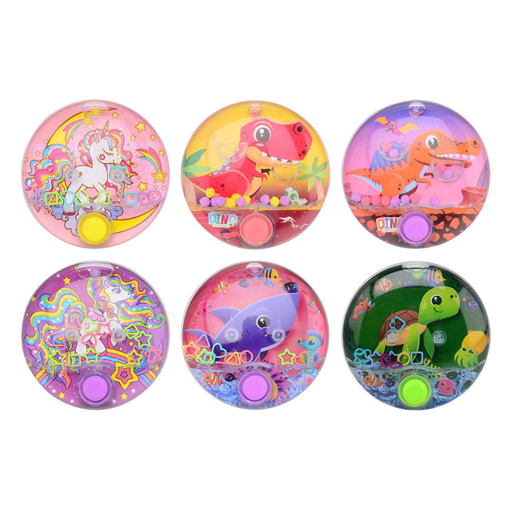 Deze doos bevat 12 waterspelletjes met kleurrijke dierenpatronen erop. Druk op de ronde knop om het water, en daarmee de elektrische ringetjes, in beweging te brengen. Deze doos is ideaal als deelcadeautje op scholen en kinderopvang, met 12 spelletjes en 6 verschillende printjes per doos. Geschikt voor kinderen vanaf 3 jaar oud. De afmetingen van de doos zijn 9,5 x 9,5 x 3 centimeter.