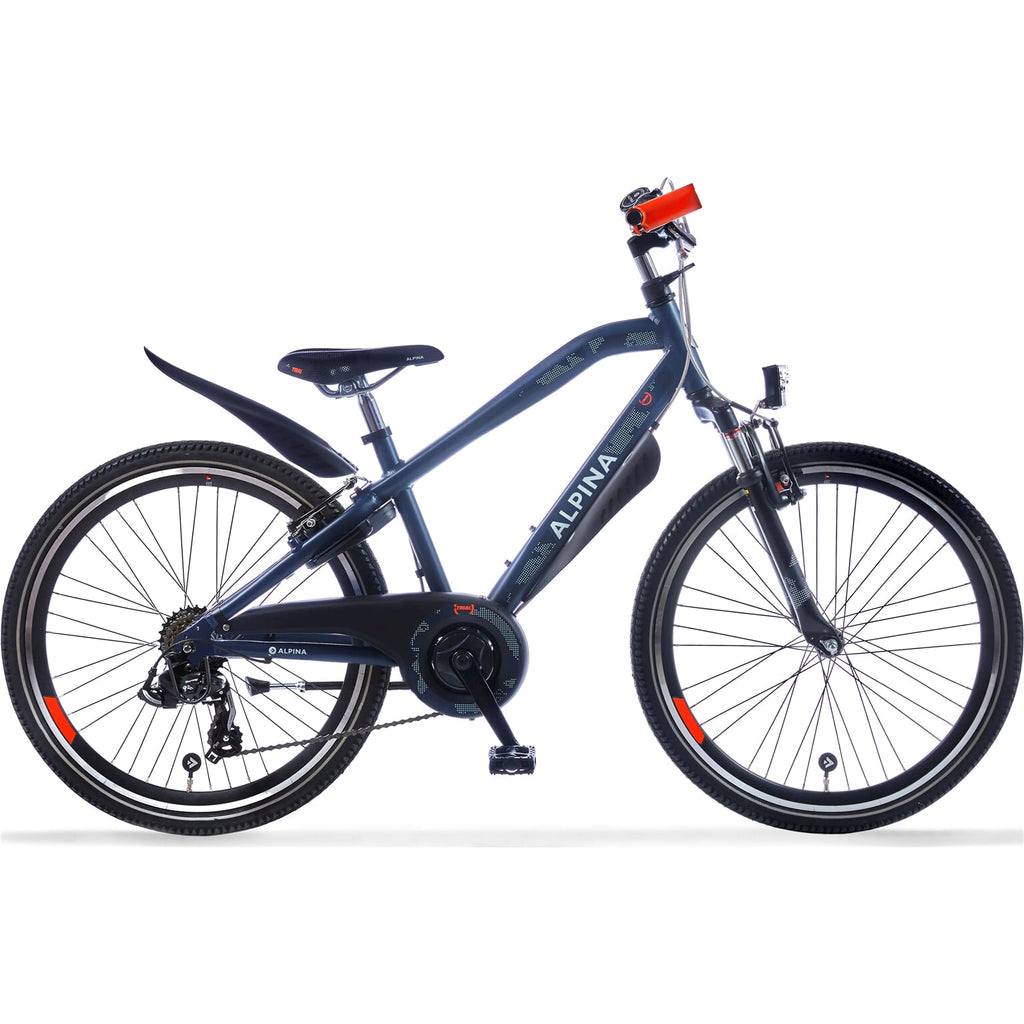 Alpina fiets Trial Jongens, 24inch. Kleur: Classic Blue Matt. Uitgerust met V-Brakes voor en achter, Shimano derailleur met 7 versnellingen, aluminium frame. Kleurnummer: PMS 282 C Matt.