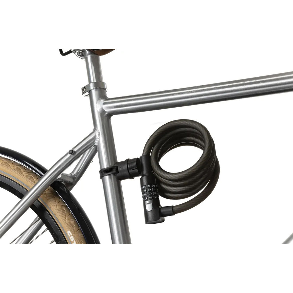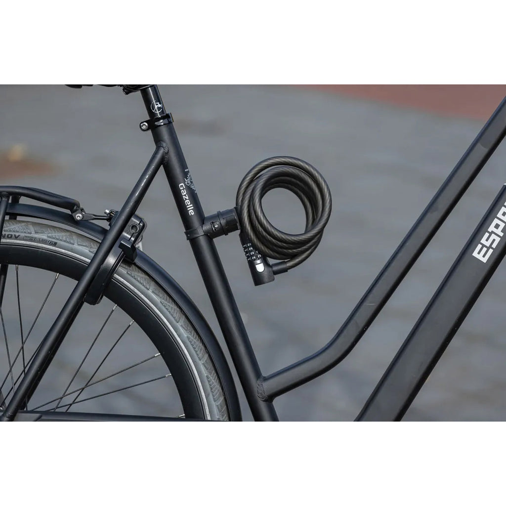 De AXA Resolute C15-180 is een modern kabelslot, uitstekend geschikt voor kort gebruik of aanvullende beveiliging van uw fiets. De Resolute is zeer gebruiksvriendelijk doordat de 4-cijferige code door u persoonlijk te bepalen is. U bergt hem gemakkelijk op door gebruik te maken van de bijgeleverde universele framehouder. Deze houder is voor alle typen Resolute kabels gelijk, waardoor u deze ook onderling uit kunt wisselen. AXA Resolute sloten onderscheiden zich door de chique roestvaststalen details en de luxe matte coating van de kabel. Het Resolute kabelslot is 180 cm lang en heeft een diameter van 15 mm. Beveiligingsniveau 6 Standaard beveiliging voor kort parkeren of aanvulling bij een ringslot Persoonlijk instelbare 4-cijferige code Universele houder voor eenvoudige montage Automatische click-in functie Lengte 180 cm Diameter kabel Ø 15 mm Luxe mat zwarte polyester coating en roestvaststalen details 8713249275611 AXA combinatiekabelslot "Resolute" (zelfbedieningsverpakking), 4-voudig vrij instelbare combinatie, montage op frame of zadelpen, universele bevestiging, matzwart. Met compatibele universele bevestiging voor alle Resolute-kabeltypes, automatische klikfunctie, met roestvrijstalen details en matte kabelbehuizing. Met de Resolute kabelsloten heeft AXA een compleet assortiment voor mensen die graag een licht slot gebruiken. Met de bijbehorende houder zijn de kabels eenvoudig mee te nemen. Naast de varianten met een sleutel hebben we ook kabels met een code sluiting SB-pakket, 4-voudig vrij instelbare combinatie, bevestiging aan frame of zadelpen, universele houder, matzwart Met compatibele universele houder voor alle Resolute-kabeltypes, automatische klikfunctie, met roestvrijstalen details en matte buitenkabel. Diameter 15.0 mm Hoofdkleur zwart Lengte 180.0 cm Montage universeel Sluitmethode cjfercombinatie Type/soort Artikel Uitvoering kabelslot Veiligheid hoog