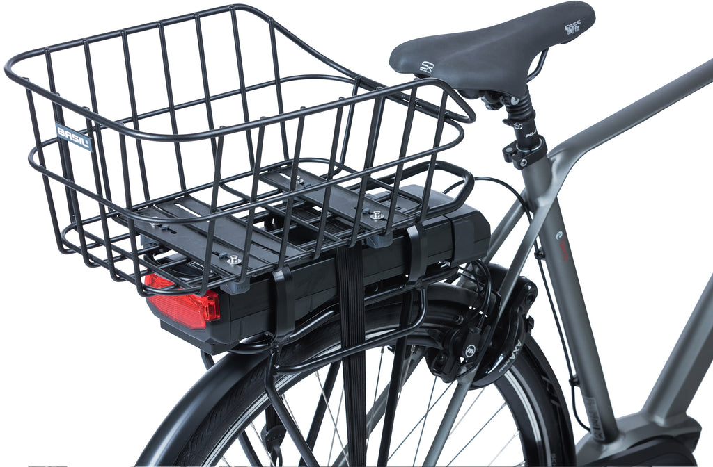 De Basil Cento Alu WSL is een moderne fietsmand die je achterop je fiets bevestigt. De zwarte mand is gemaakt van aluminium en daardoor licht van gewicht. Met een afmeting van 45 x 32.5 x 21 cm en een inhoud van 21 liter neem je gemakkelijk een boodschap, een schooltas of een sporttas mee. Handig voor meerdere doeleinden dus!