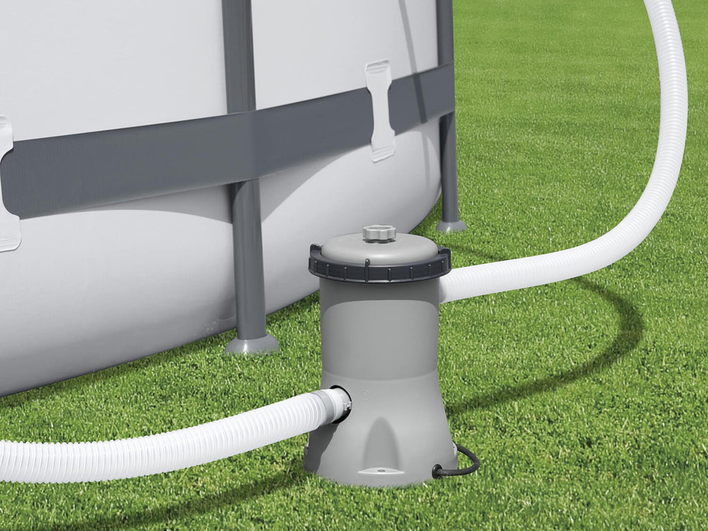 Deze Bestway cartridgefilterpomp is perfect voor automatische filtratie en reiniging van zwembadwater. Met een pompcapaciteit van 2006 liter per uur is deze pomp geschikt voor zwembaden tot 14.300 liter. De filterpomp wordt geleverd met een vervangbare filtercartridge (Bestway Type II cartridgefilter - 58904), die na ongeveer 2 weken vol met vuil zit en vervangen moet worden.