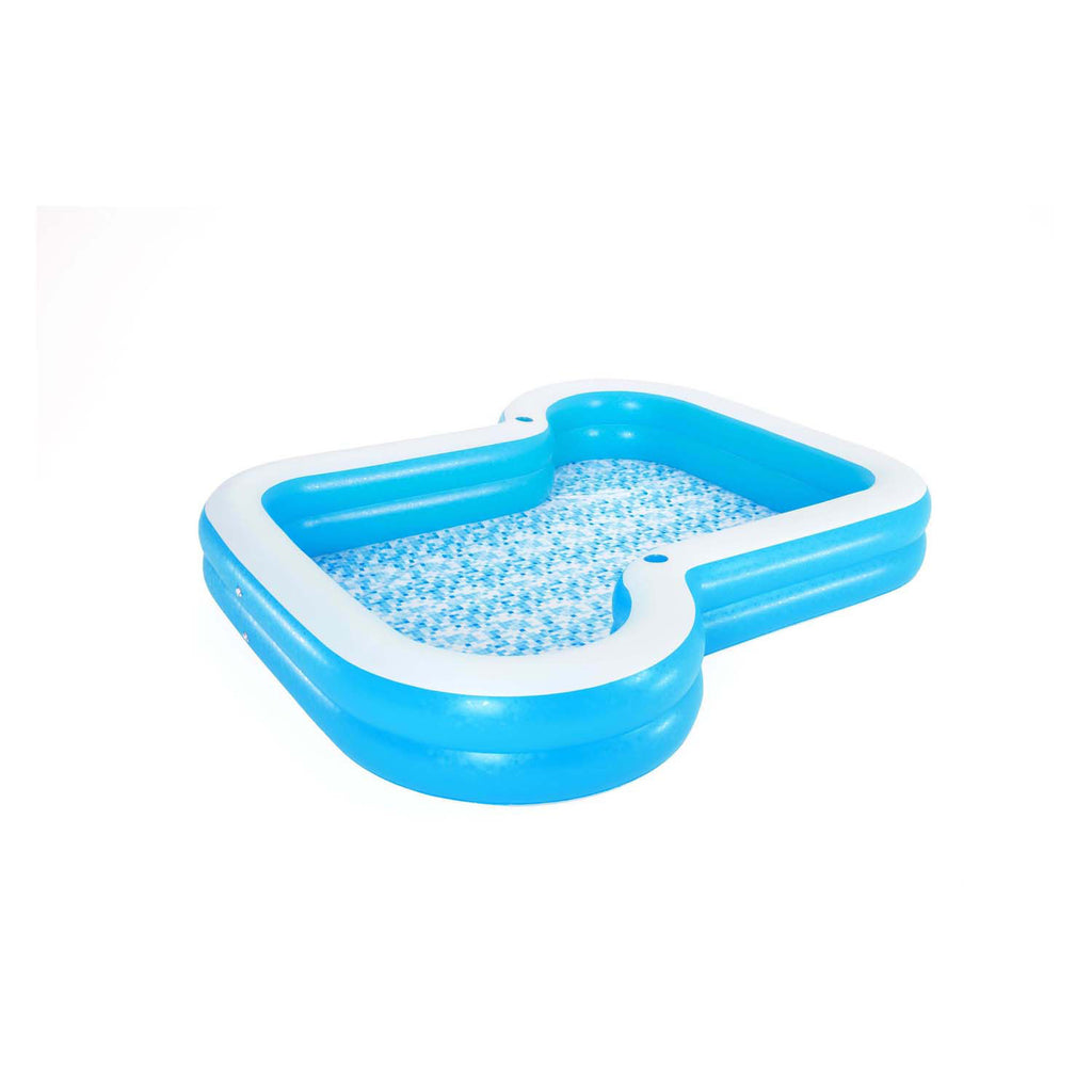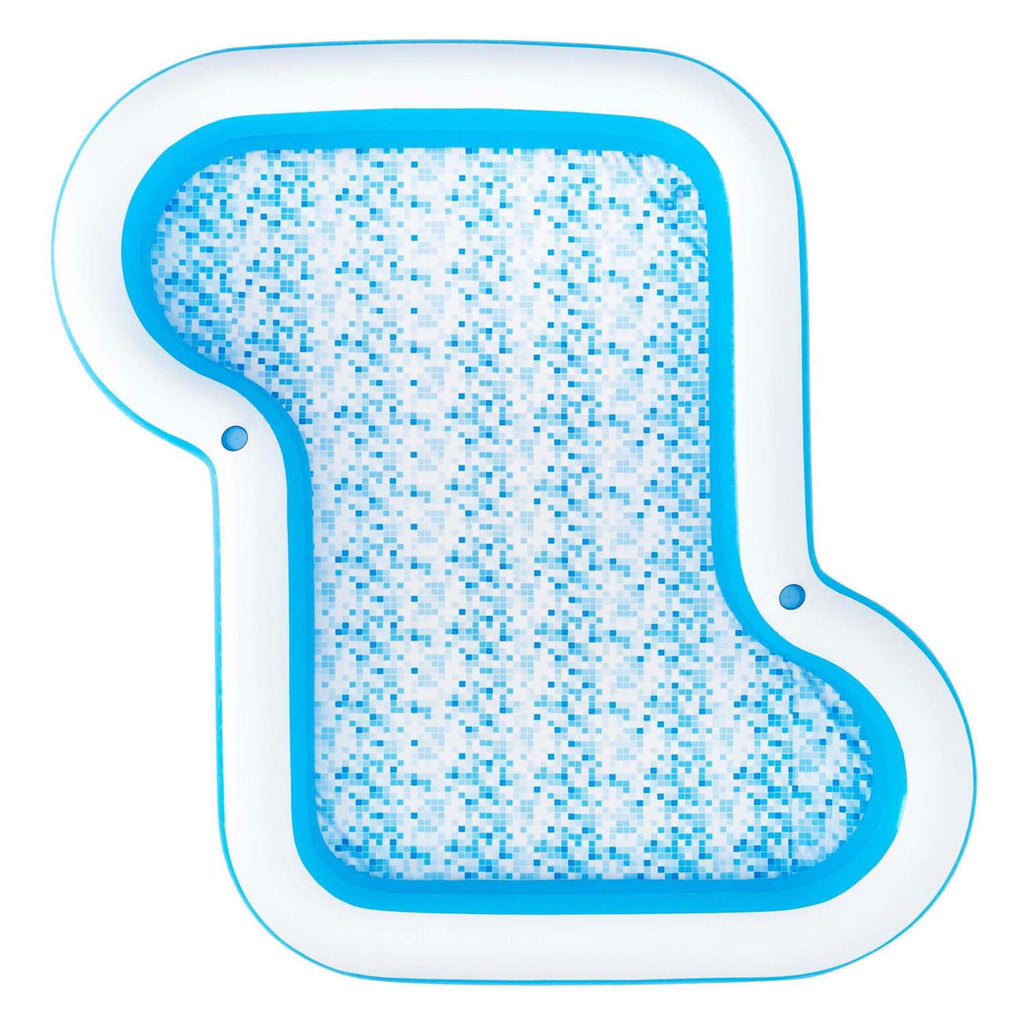 Dit zwembad heeft een bijzondere Z-vorm en creëert hierdoor handige zitplekken voor de ouders om de spelende kinderen in het water in de gaten te houden. De bekerhouders zorgen ervoor dat de ouders comfortabel blijven terwijl de kinderen kunnen genieten van een lang zwembad en genoeg ruimte. De liner aan de binnenkant van het bad heeft een realistische mozaïek print en de zijwanden zijn blauw van kleur met een witte bovenrand. De twee individuele opblaasbare wanden maken het bad gemakkelijk op te blazen. Het bad wordt geleverd met een heavy-duty reparatiepatch, heeft een watercapaciteit van 1.207 liter en is geschikt voor kinderen vanaf 3 jaar. Afmeting (L x B x H): 305x274x46 cm