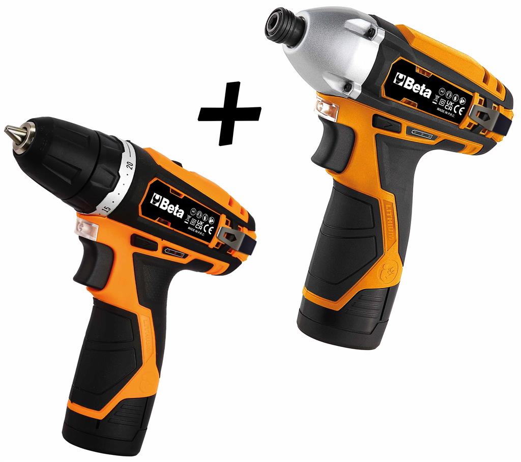 Beta 12V Set bestaande uit ultracompacte boormachine en omschakelbare slagschroevendraaier