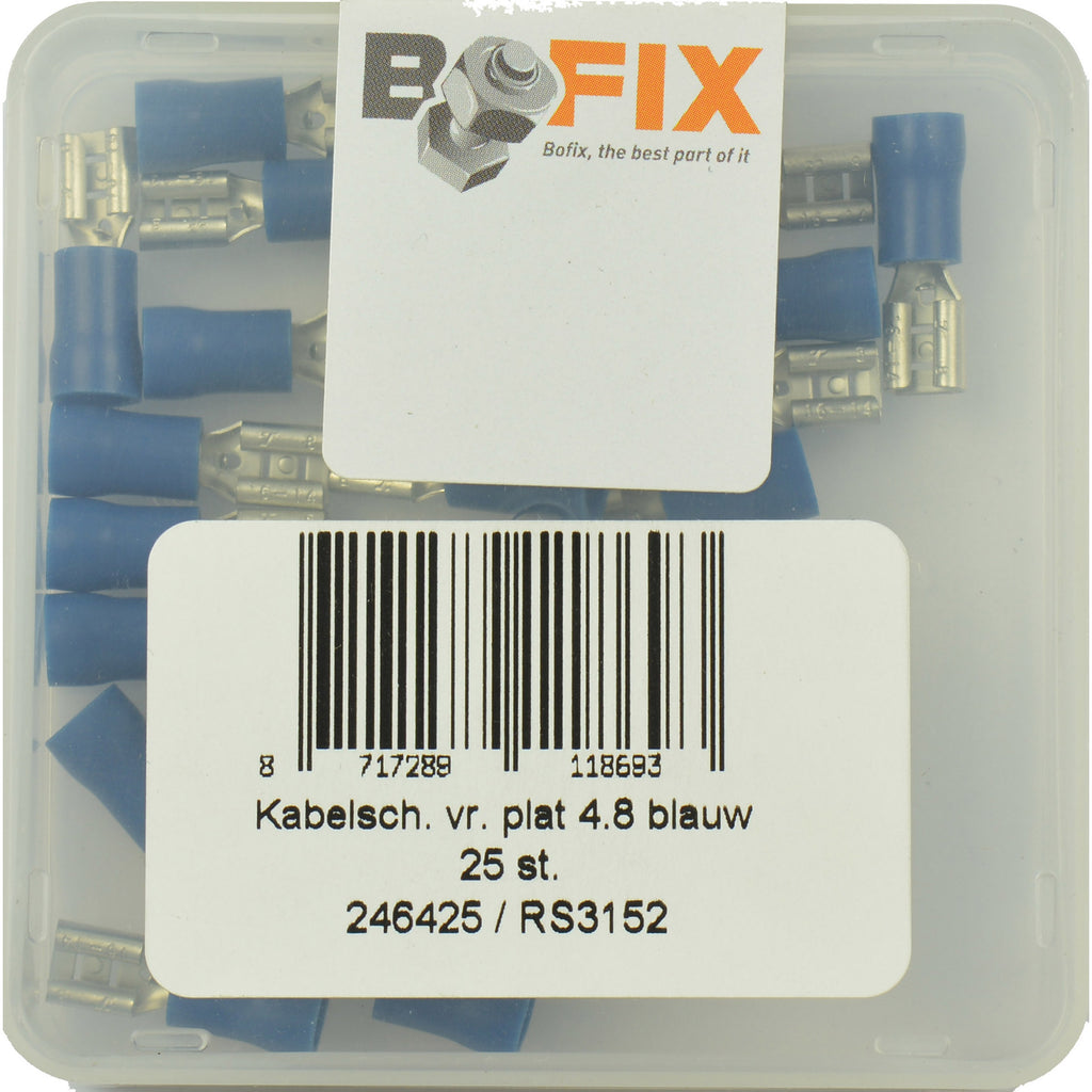 Bekijk ook onze andere artikelen, vergelijkbaar met de Bofix kabelschoen amp vrouw plat 4,8mm blauw (25st).