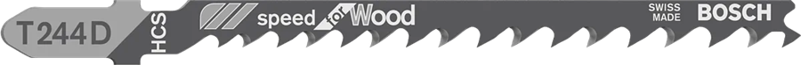 T 244 D Speed for Wood decoupeerzaagblad biedt snelle, gebogen zaagsneden in hout: - Scherp geslepen, gezette tanden maken snelle zaagsneden - Smalle bladbreedte geoptimaliseerd voor gebogen zaagsneden - Past op alle decoupeerzagen met een T-schacht. Toepassing: - zachthout - spaanplaat
