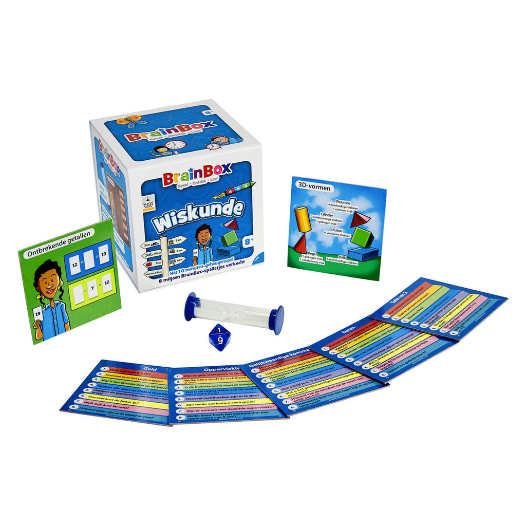 Brainbox is een leuk geheugen- en observatiekaartspel met wereldwijd 8 miljoen verkochte exemplaren. Het spel test je oog voor detail en helpt je je geheugen en observatievaardigheden te verbeteren. Met de Wiskunde editie leer je spelenderwijs over breuken, vermenigvuldiging, tijd en meer. Het spel bevat 440 individuele vragen, waardoor je keer op keer plezier aan het spel beleeft. Het kan gespeeld worden door een of meer spelers en de gameplay is snel en turn-based. Geniet van dit spel dat ongeveer 10 minuten duurt en zorg voor een leuke en uitdagende ervaring!