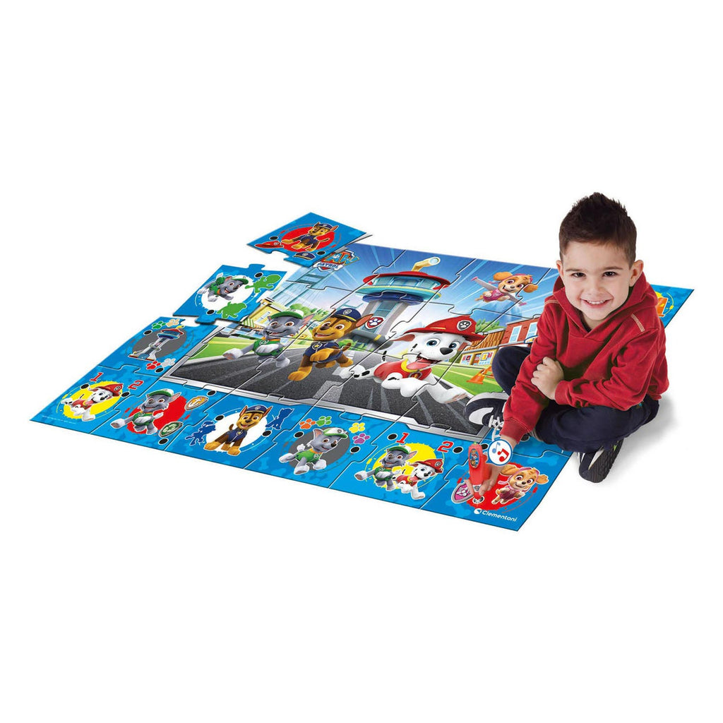 Het is een elektronische, interactieve puzzel met 24 grote puzzelstukken die samen een kleed van 70x100 cm vormen. Als het kind de puzzel heeft gelegd en de vormenkaarten op de juiste plek heeft geplaatst, kan het met de elektronische pen van Paw Patrol spelen en er leuke quizzen over vormen en kleuren mee doen. Het kind leert vormen en kleuren herkennen. Het spel stimuleert het observatie- en logisch denkvermogen, de handvaardigheid en creativiteit.