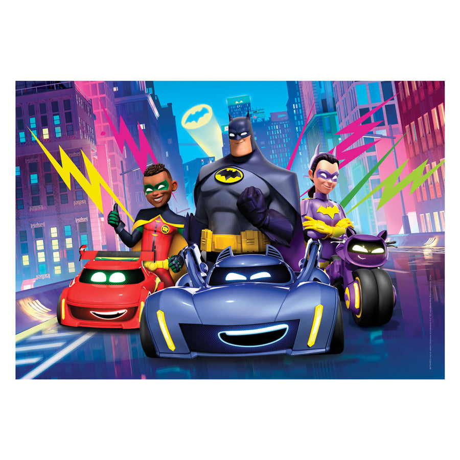 Clementoni SuperColor Maxi legpuzzel met afbeelding van DC Batwheels. De SuperColor Clementoni-puzzels begeleiden het kind in elke fase van zijn groei en helpen hem bij het ontwikkelen van handvaardigheden en observatievaardigheden. De kwaliteit van de materialen en de exclusieve druktechniek staan garant voor beelden die altijd mooi, levendig en helder zijn. Specificaties: Leeftijd: vanaf 3 jaar Materiaal: karton Aantal stukjes: 104 Afmetingen verpakking: 40 x 28 x 6 cm Afmetingen puzzel: 68 x 48 cm