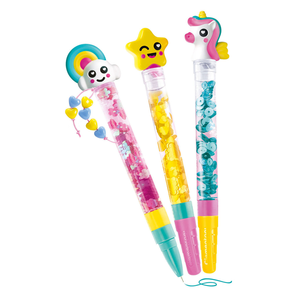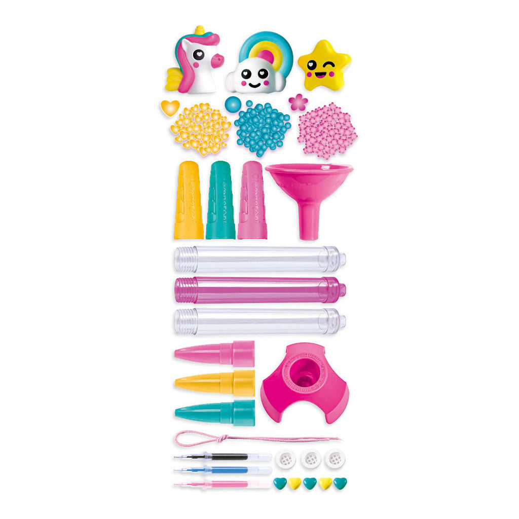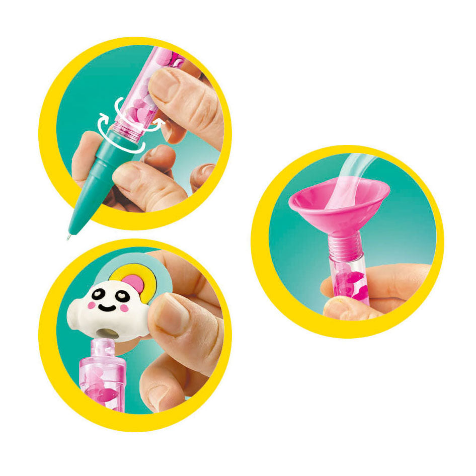Een originele creatieve kit waarmee je 3 pennen kunt samenstellen en ze personaliseren met verschillende decoraties in fantasiestijl Een praktische en rijke kit bestaande uit: 3 pennen, 4 verschillende kleuren inkt, 3 personages en alle instrumenten die nodig zijn om ze te vervaardigen. Een nieuw Idea spel waarmee je je eigen pennen kunt creëren en personaliseren, met vele accessoires en decoraties Een spel waarmee je niet alleen je eigen pen kunt personaliseren. Je kunt hem helemaal zelf creëren en je fantasie de vrije loop laten Ontwikkeld en ontworpen in Italië. Aanbevolen vanaf 6 jaar.