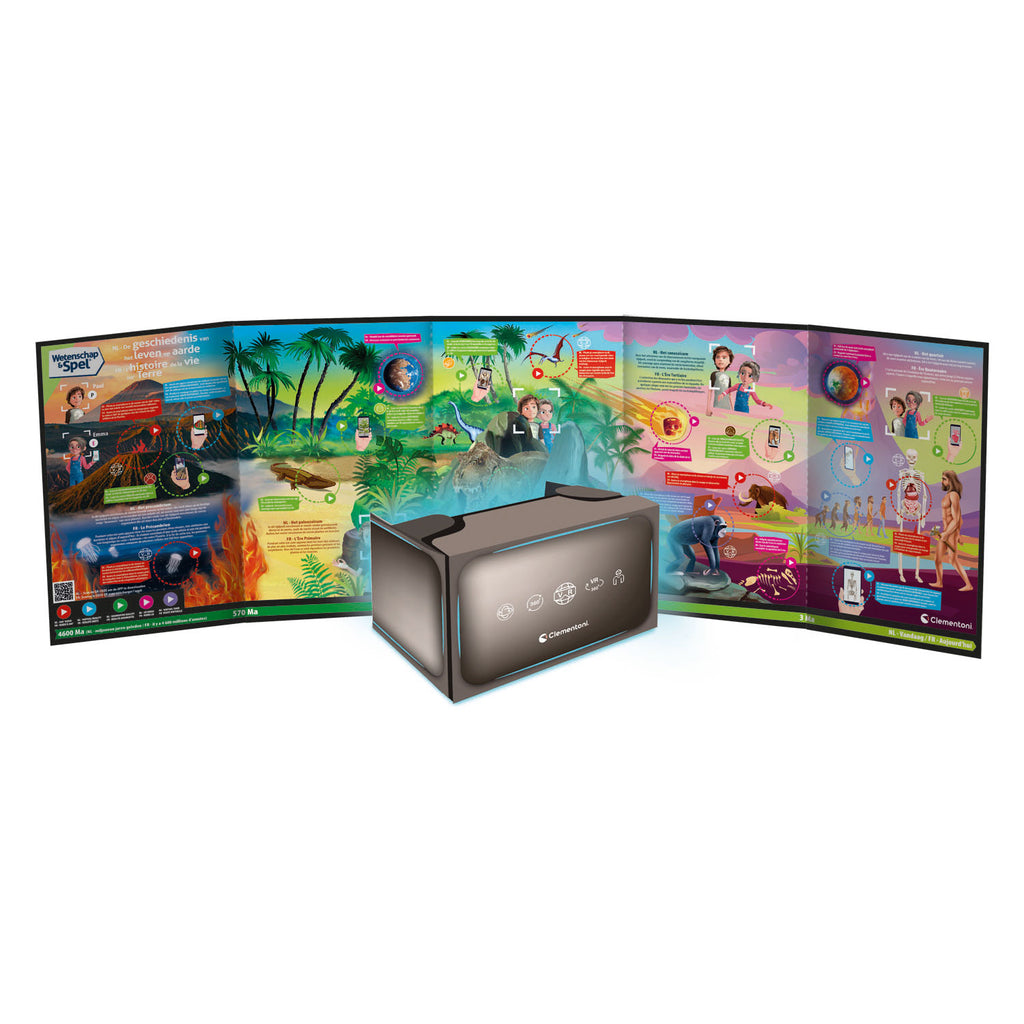 Een innovatieve kit om de evolutie van het leven op aarde te herleven, vanaf het archaïsche tijdperk tot aan het verschijnen van het geslacht Homo. Met deze kit kun je multidisciplinaire experimenten uitvoeren op een leuke en begeleide manier. De kit bevat zowel fysieke als digitale activiteiten, waaronder tutorials, informatieve video's en 3D-modellen van toegevoegde realiteit die je kunt bekijken met je smartphone. Daarnaast zijn er virtuele tours en 360° video's waarmee je kunt interageren met de virtuele wereld, dankzij de meegeleverde viewer. Ga mee op een reis door de tijd en ontdek opnieuw de evolutie van het leven op aarde, met je eigen avatar, tijdens een avontuur dat zowel fysiek als digitaal is.
