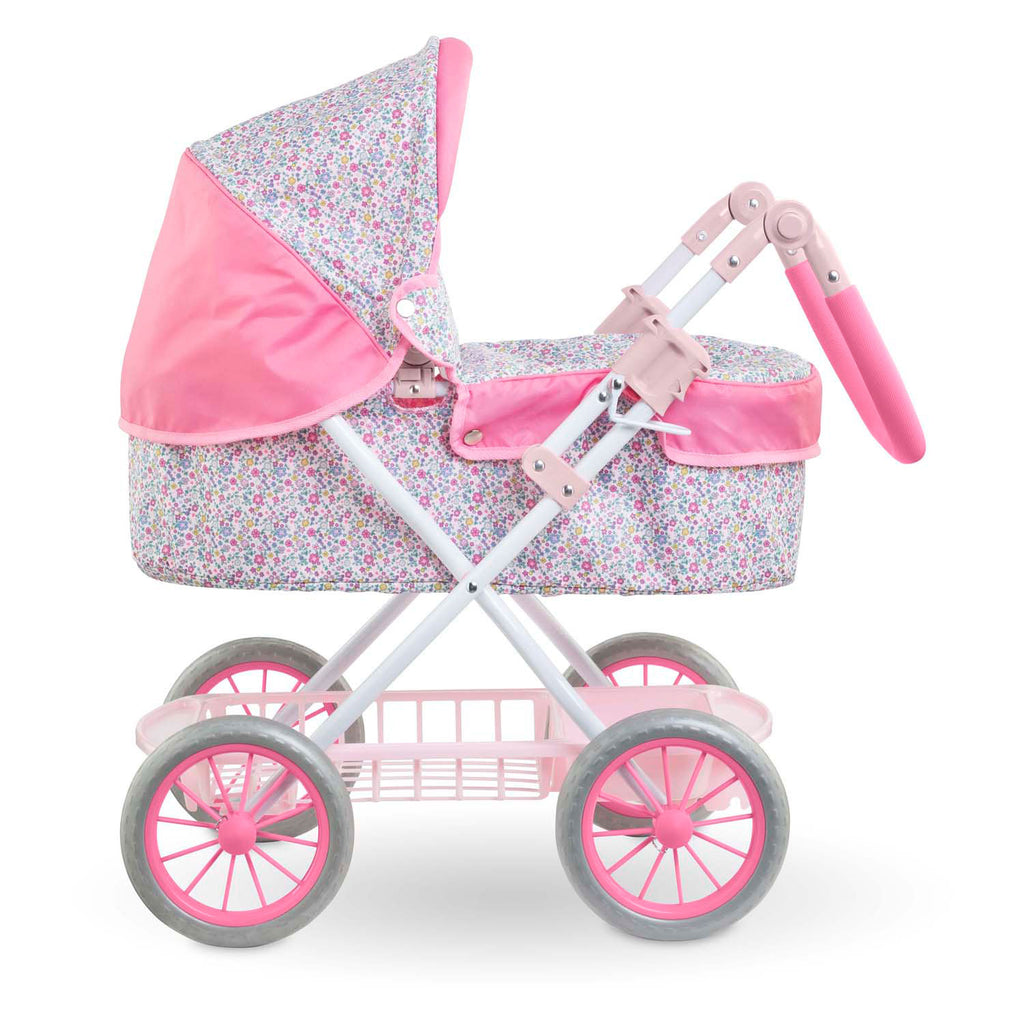 Tijd voor een wandeling! Wat een genot om met deze zeer complete bloemenkinderwagen een ritje te maken. Ideaal om je grote pop van 36 tot 52 cm mee naar buiten te nemen voor wat frisse lucht. Dankzij het in hoogte verstelbare stuur kan de wagen worden aangepast aan de grootte van het groeiende kind! Het kind kan zelf de voor hem of haar meest geschikte hoogte van het stuur kiezen door middel van 2 drukknoppen. De hoogte kan worden ingesteld van 36 cm tot ongeveer 75 cm. Poppenwagen met inklapbare kap en schoudertas Als het erg mooi en warm weer is, kan de kap worden omgevouwen en met behulp van de drukknopen worden verwijderd. Zo voorkomt je dat de babypop een zonnesteek krijgt! De vrolijke poppenwagen wordt geleverd met een schoudertas waarin je alles kunt meenemen wat je pop nodig heeft en een uitneembare opbergmand om nog meer accessoires mee te nemen! Compact op te bergen en vervoeren Eenvoudig en snel opvouwbaar, dus makkelijk te vervoeren. Bovendien neemt de poppenwagen weinig ruimte in beslag bij het opbergen. Gegarandeerd mooie, lange wandelingen voor je grote Corolle-pop! Pop apart verkrijgbaar. Dit product is speelgoed, gebruik het niet voor kinderen. Afmetingen van het gemonteerde product: 62 x 70 x 40,5 cm. Vanaf 3 jaar.
