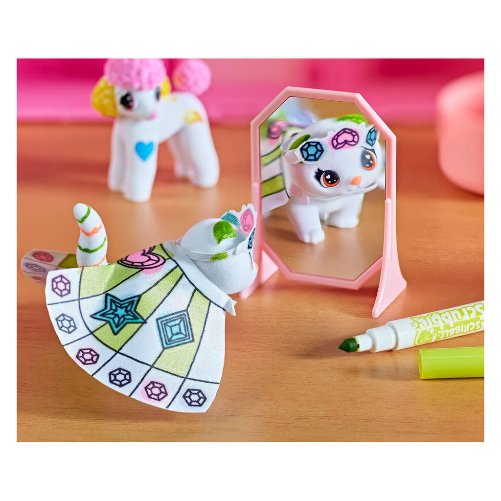 Kleur je dieren in met de meegeleverde wasbare stiften in je superschoonheidssalon. Was ze in het bad... en begin opnieuw! Met 4 dieren, 6 stiften, 3 stickervellen en vele andere accessoires. Een geweldige schoonheidssalon met veel Washimals-accessoires om ze tot in het oneindige aan te passen!