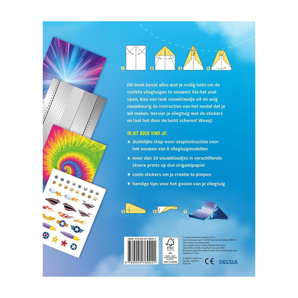 Dit leuke boek van Deltas bevat alles wat je nodig hebt om de coolste vliegtuigen te vouwen!Er zitten meer dan 30 vouwblaadjes in stoere prints bij zodat je meteen aan de slag kunt gaan. Kies een model uit, haal een vouwblaadje uit het boek en volg nauwkeurig de instructies van het model dat je hebt gekozen. Bovendien zitten er in het boek ook leuke stickers om je vliegtuig mee te versieren. Vouwen en vliegen maar!In dit boek vind je:- duidelijke stap-voor-stapinstructies voor het vouwen van 8 vliegtuigmodellen- meer dan 30 vouwblaadjes in verschillende stoere prints op dun origamipapier- coole stickers om je creatie te pimpen- handige tips voor het gooien van je vliegtuig
