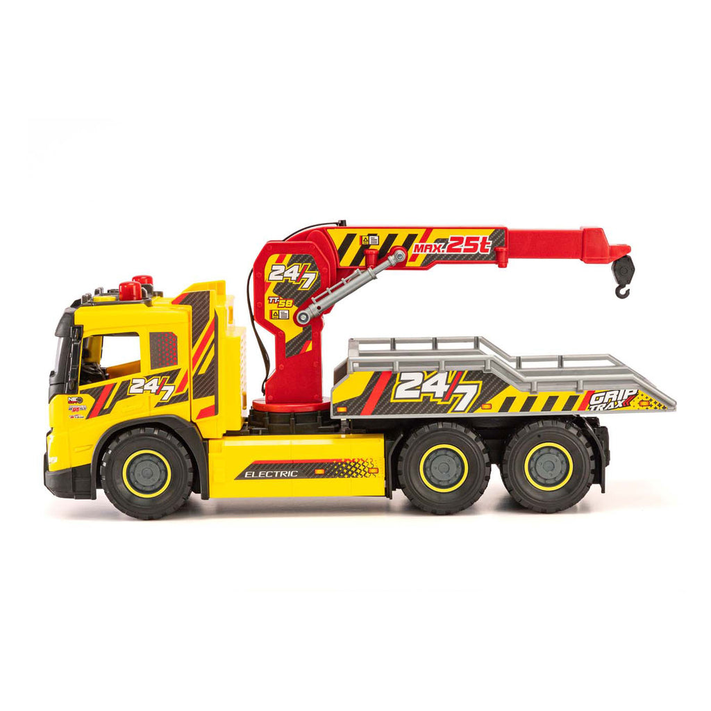De Dickie Toys Giant Tow Truck is een indrukwekkende speelgoedtakelwagen van 55 cm lang, ontworpen voor kinderen vanaf 3 jaar. Met een beweegbare kraanarm en een uitschuifbaar platform kunnen kinderen voertuigen laden en vervoeren, net als in het echt. De truck is uitgerust met realistische licht- en geluidseffecten voor extra speelplezier!