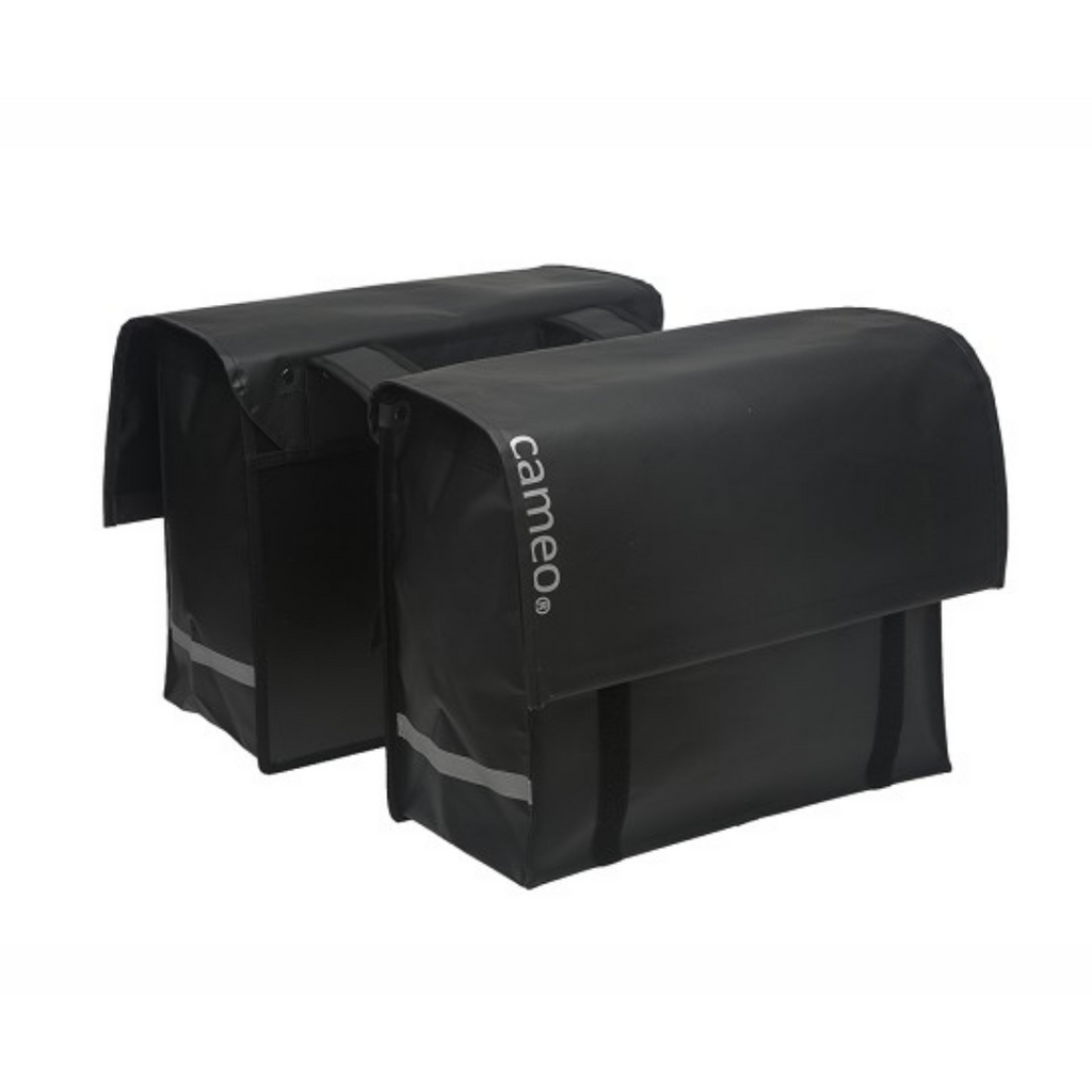 Dubbele tas van bisonyl met een inhoud van 46 ltr. Deze ruime fietstas is gemaakt van waterdicht bisonyl en is ideaal voor het vervoeren van spullen op de fiets. De tas heeft een sterke sluiting met klittenband en een verzwaarde klep om opwaaien te voorkomen. Met riempjes wordt de tas eenvoudig aan de bagagedrager bevestigd. Geschikt voor vrijwel alle fietsen, inclusief elektrische fietsen. De tas heeft reflectie voor extra zichtbaarheid en is afneembaar. Product specificaties - New Looxs code: 170.533 - Kleur: zwart - Geslacht: unisex - Materiaal: bisonyl (waterdicht polyester) - Type sluiting: gesp - Type bevestiging: riempjes - Inhoud: 46 liter - Afmeting per tas: 39 x 33 x 18 cm (L x B x H) - Geschikt voor e-bikes: ja - Afneembaar: ja - Reflectie: ja - Breedte bagagedrager: 16 cm