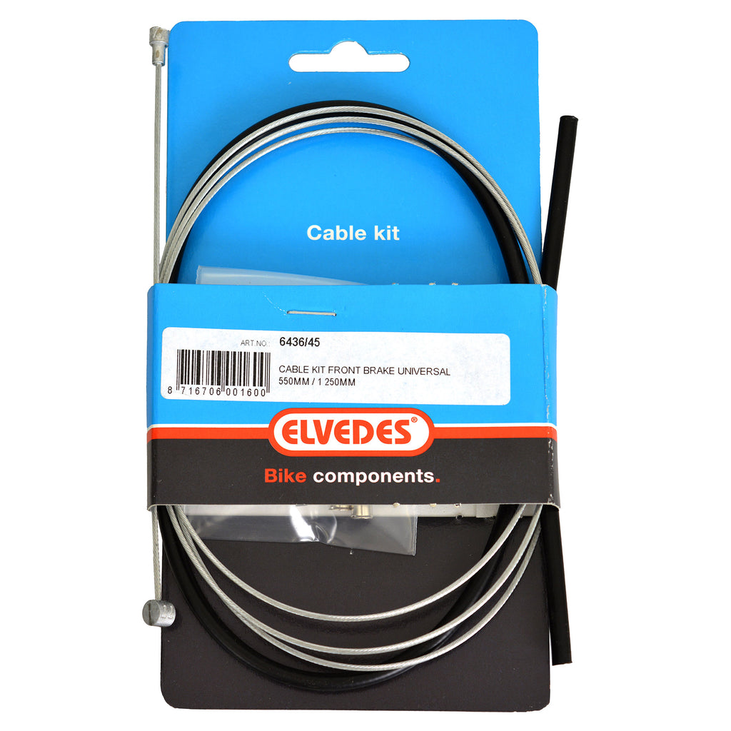 De Elvedes voorremkabel set universeel is een handige set voorremkabels voor je fiets. De buitenkabel is gemaakt van kunststof en heeft een lengte van 550 mm, terwijl de binnenkabel van staal is en een lengte heeft van 1250 mm. De buitenkabel heeft een dikte van 5 mm en de binnenkabel heeft een dikte van 2 mm. Deze set wordt geleverd met zowel peernippels als tonnippels, zodat je kunt kiezen welke het beste bij jouw fiets past. Het is een veelzijdig product dat geschikt is voor verschillende fietsen.