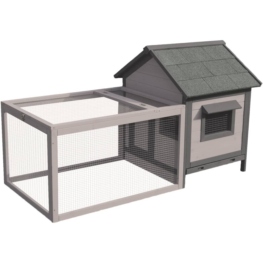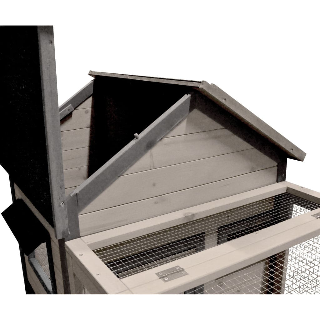 Dit hok bestaat uit 2 verdiepingen met elk 1 slaapgedeelte en 1 loopgedeelte. Het konijn kan 's nachts in het slaapgedeelte uitrusten, terwijl het overdag via de deur naar buiten kan gaan.