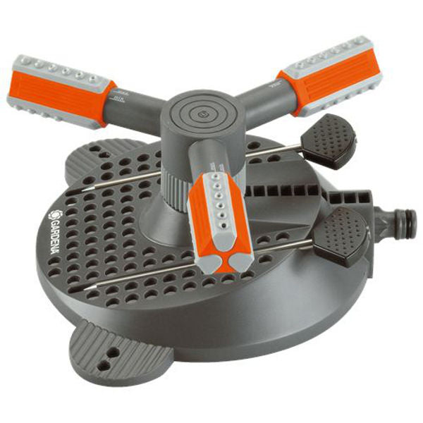 Met de GARDENA Comfort Cirkelsproeier Mambo kan je gemakkelijk kleinere en grotere oppervlakken besproeien. Het sproeioppervlak is 9 m² tot maximaal 310 m² instelbaar, met een sproeibereik van 3 m tot maximaal 20 m. De sproeier heeft draaiende, zeer precieze spuitmonden voor gelijkmatige besproeiing zonder plassen. Het bereik van de sproeier kan afzonderlijk worden ingesteld door de watertoevoersnelheid aan te passen. De stevige basis garandeert een stabiele werking, maar kan ook mobiel worden gebruikt. Het fijnmazige, uitneembare vuilfilter maakt het reinigen heel eenvoudig.