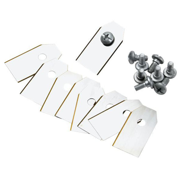 - Verpakking bevat 9 reservemessen en 9 bevestigingsschroeven