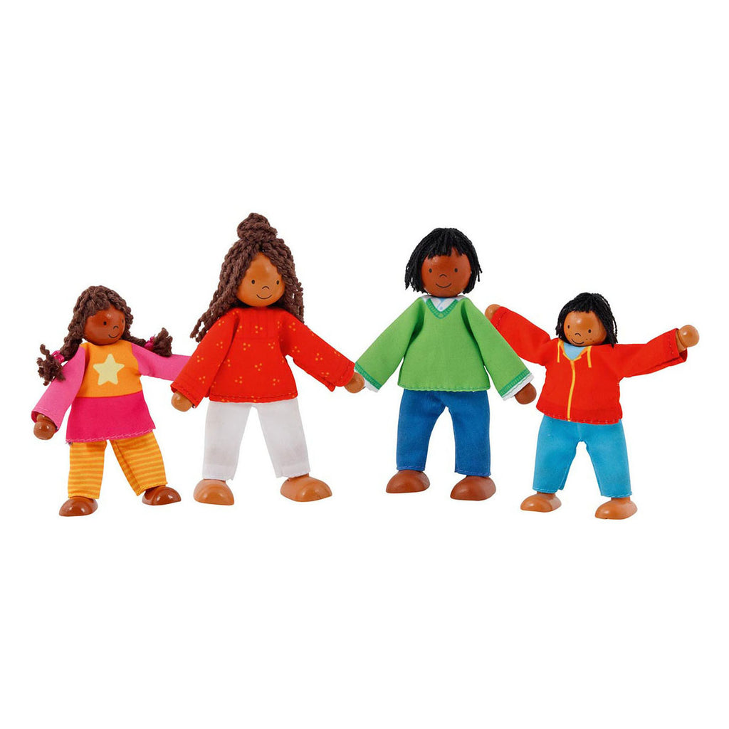 Flexibel poppengezin met twee kinderen: de liefdevol vormgegeven houten figuren zijn gemakkelijk te verplaatsen en kunnen zowel staan als zitten. Ze passen in elk Goki-poppenhuis en brengen spel tot leven. Creativiteit en vrij spel worden aangemoedigd en de verbeelding wordt gestimuleerd om rollen te spelen. Met broers en zussen en vrienden worden sociale interacties nagebootst en geoefend door alledaagse huiselijke taferelen na te spelen. 4-delig, de popjes zijn ca. 11 centimeter groot. Geschikt voor kinderen vanaf 3 jaar.