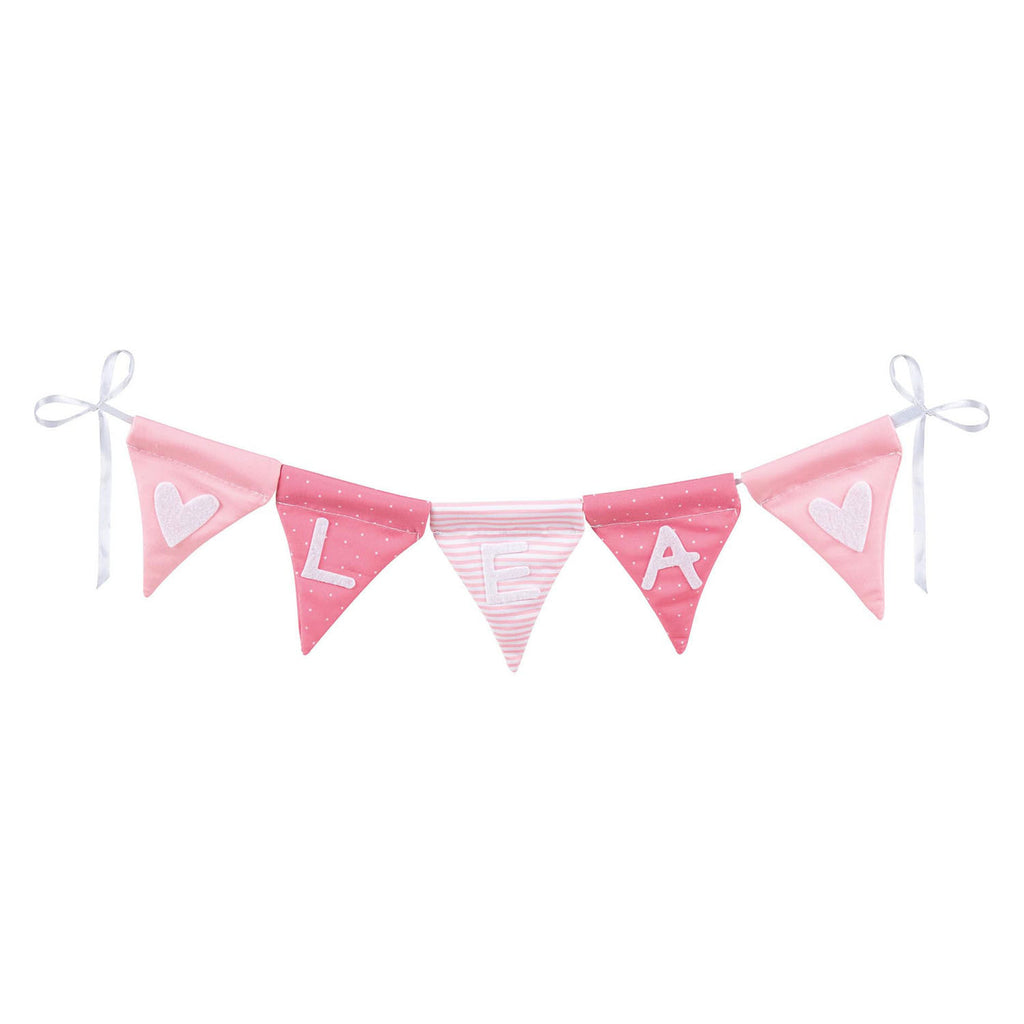 Of het nu voor een verjaardag is, een eerste schooldag of om de deur van een kinderkamer te versieren - deze roze vlaggenlijn is een zeer persoonlijk cadeau voor elke gelegenheid. Tien stoffen wimpels in 3 kleuren roze met 4 stickervellen nodigen kinderen uit om ze op te plakken en hun eigen ontwerp te creëren. Zoals hun eigen naam, versierd met hartjes en sterren. Afmeting: 7,5 bij 10 cm. Materiaal: stof. Geschikt voor kinderen vanaf 3 jaar oud.