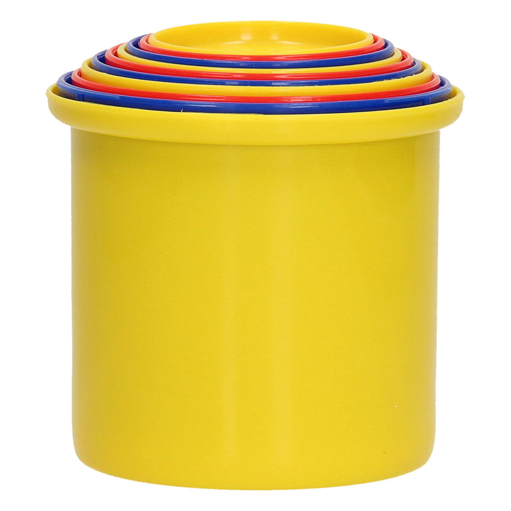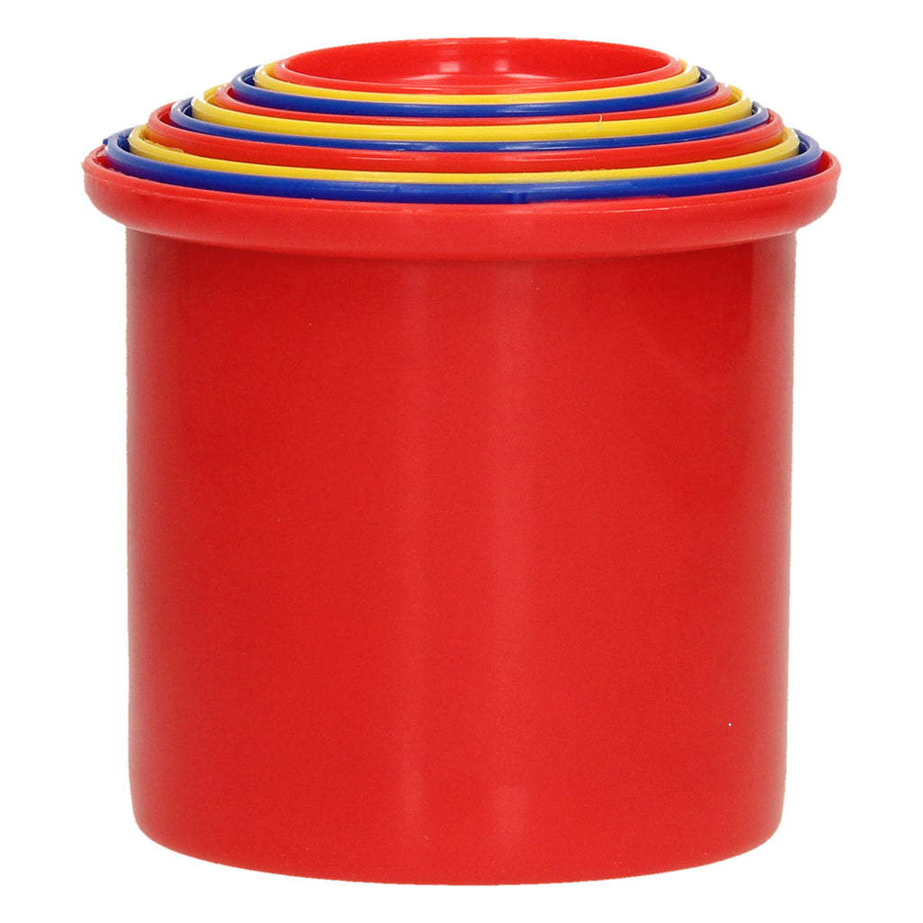 Deze set van 10 bekers in vrolijke kleuren is perfect voor urenlang speelplezier! De bekers passen precies in elkaar en je kunt er fantastische torenhoge stapels mee maken. Elke beker heeft een unieke ingeperste afbeelding waarmee je leuke vormpjes kunt maken.