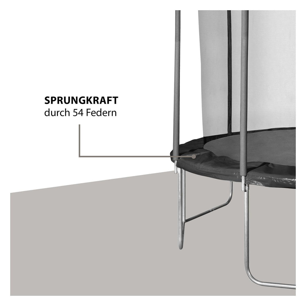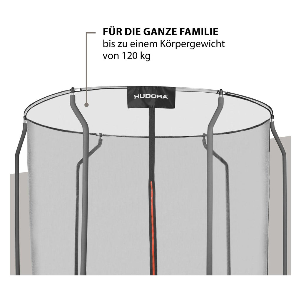 HUDORA trampoline met veiligheidsnet, diameter 300 cm Klaar voor de start, af! De First 300 trampoline is de juiste keuze voor veilig springplezier. Het interne veiligheidsnet kan eenvoudig strak aan de bovenzijde van de stalen ring worden bevestigd. Zelfs de wildste acrobaten kunnen springen, ravotten en salto's maken zonder ongelukken. De uiterst stabiele constructie met 9 poten en de brede beschermrand die de veren volledig afdekt, behoren tot de hoogwaardige details. Net als de 54 veren zelf, die zorgen voor een mega bounce. Dit model is extreem stabiel dankzij het thermisch verzinkte metalen frame, inclusief de zes gevoerde hoofdstokken. En het beste van alles: de First 300 trampoline geeft kinderen niet alleen het heerlijke gevoel voor korte tijd zo licht als een veertje te zijn. Zelfs volwassenen kunnen met een gebruikersgewicht tot 120 kg gemakkelijk enkele sprongen wagen. Geen wonder dat een trampoline bovenaan de lijstjes van veel mensen staat. Omdat het niet alleen geweldig is om te sporten, maar net zo goed om te chillen en in de zon te liggen.