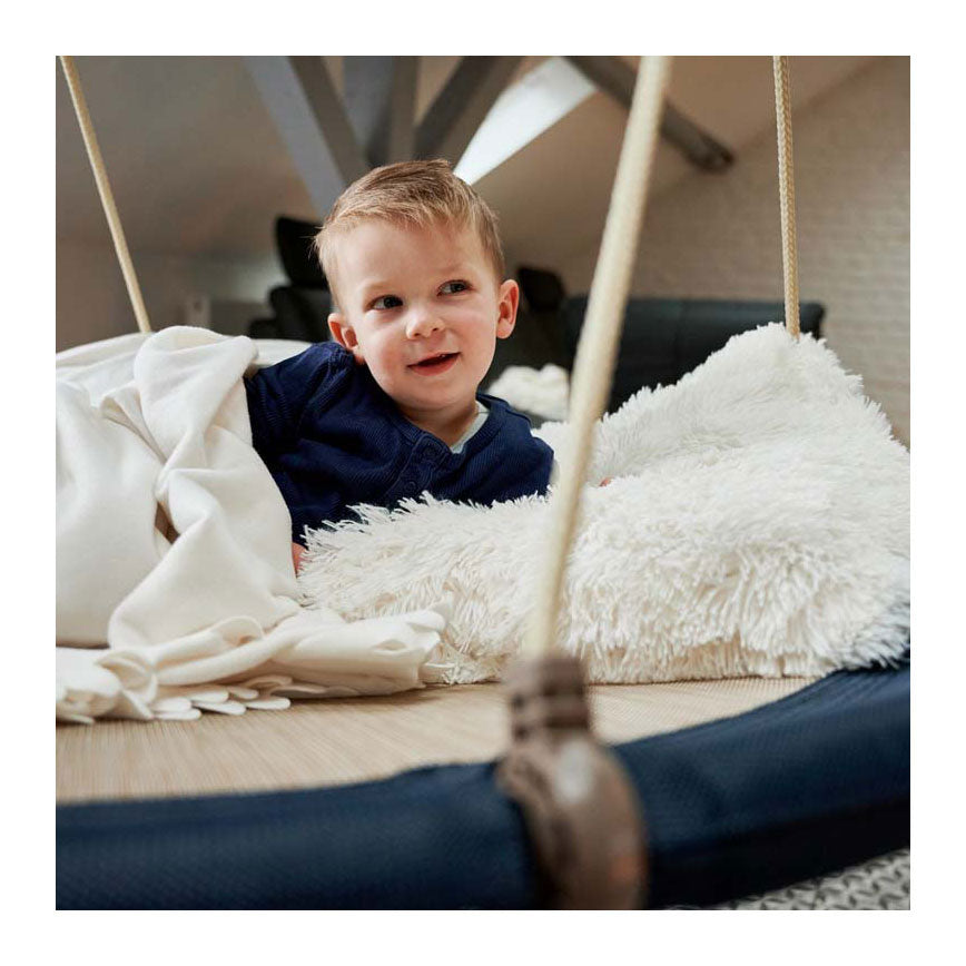 Ronde nestschommel in loungestijl. Hier kan je mee thuiskomen! De nieuwe ronde nestschommel met een diameter van 90 cm biedt niet alleen comfortabel schommelplezier, maar is ook echte blikvanger. Het gemêleerde nestoppervlak en de prachtige grijstint genaamd “Midnight” aan de rand passen in elk trendbewust tuinontwerp. Technisch gezien overtuigt het hoogwaardige en slijtvaste Textilene-materiaal waarvan het ligvlak is gemaakt. Hetzelfde geldt voor de weerbestendige frameconstructie, die belastbaar is tot 150 kg. Deze is gegalvaniseerd en gepoedercoat. Hierdoor blijft de nestschommel jarenlang onberispelijk mooi. Heel praktisch: dankzij de eenvoudige steekverbinding is de schommel in een handomdraai en zonder gereedschap opgebouwd. Let op! Alleen voor huishoudelijk gebruik. Alleen gebruiken onder direct toezicht van volwassenen. Niet geschikt voor kinderen onder de 36 maanden i.v.m. lange snoeren. • HARMONIOUS LOOK: Met een stijlvolle look in lounge-design • ONGECOMPLICEERD: montage zonder gereedschap • WEERBESTENDIG: Geschikt voor buitengebruik dankzij het gegalvaniseerde en gepoedercoate frame • UITZONDERLIJK STABIEL: Veilig schommelen dankzij het solide 25 mm ronde buisframe • STERK: Voor het hele gezin tot 150 kg • AFMETING: doorsnede 90 centimeter • Geschikt voor kinderen vanaf 3 jaar oud