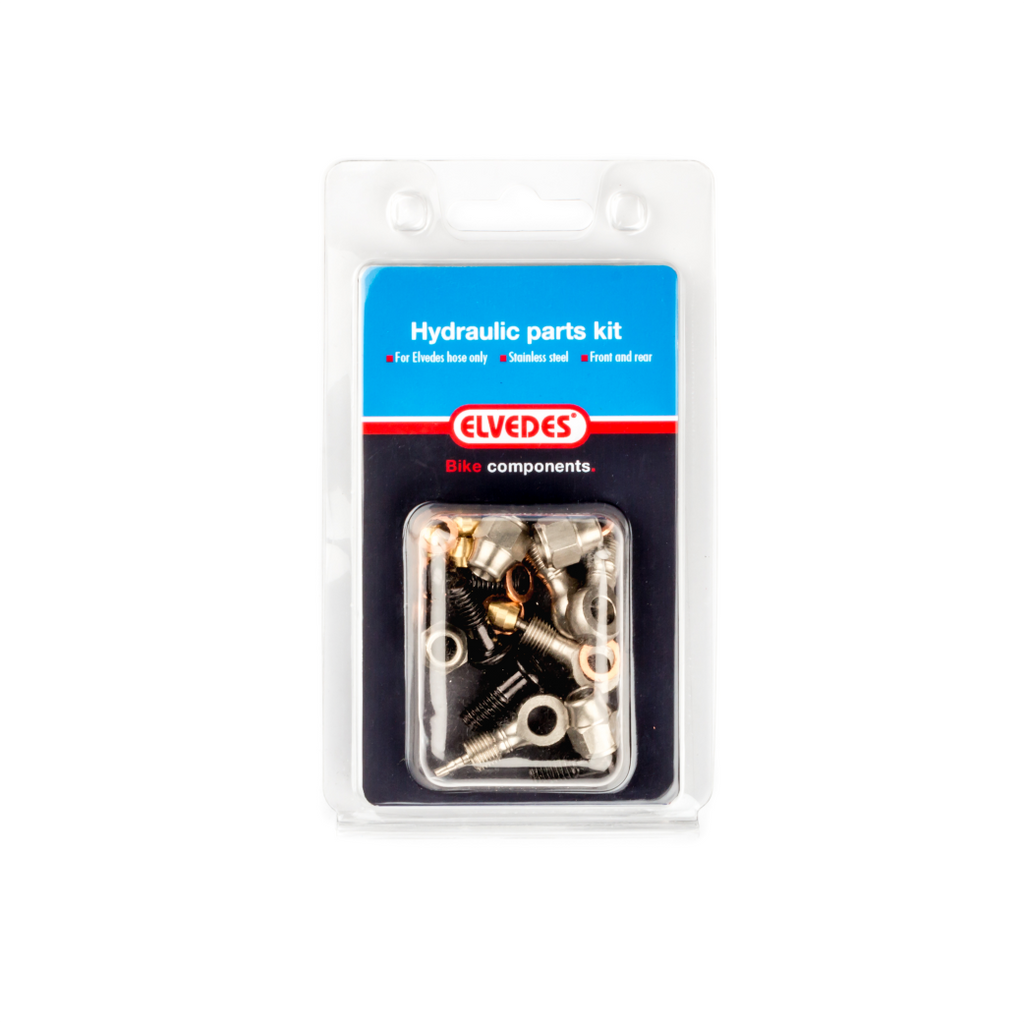 De Elvedes schijfrem Hydro parts Kit 7 is een complete set met onderdelen voor zowel voor- als achterremmen. Deze set is specifiek ontworpen voor gebruik met de Elvedes Hydro Hose remleiding. De onderdelen zijn gemaakt van hoogwaardig staal en kunststof en hebben een gewicht van 50 gram.