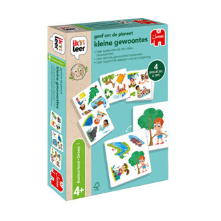 Geef om de planeet kleine gewoontes. Een Jumbo kaartspel waarmee we kinderen leren bepaalde kleine gewoontes te herkennen die een negatief effect op het milieu kunnen hebbebn, en wat ze kunnen doen om die te vermijden. 4 verschillende manieren om te spelen.