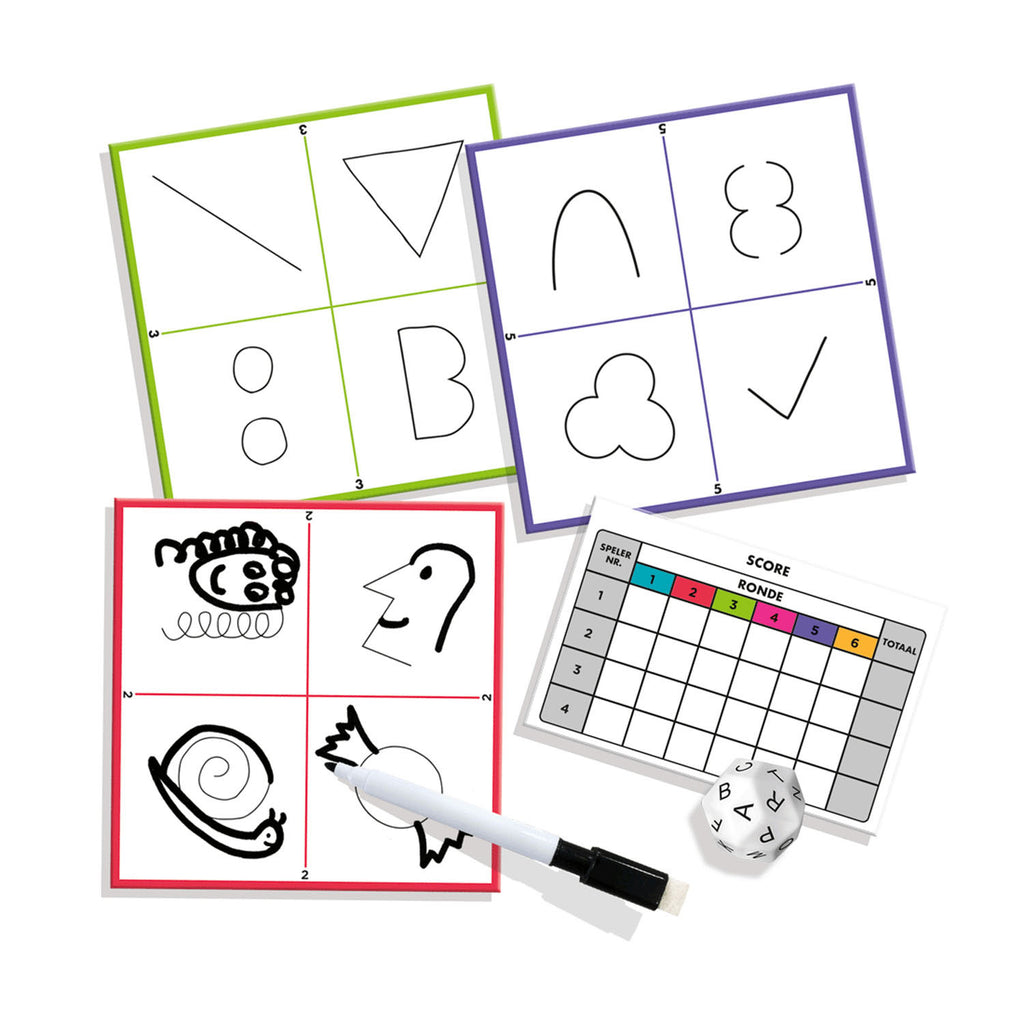 Test je vindingrijkheid met het nieuwe partyspel Sketch! Bij dit dobbelspel van de makers van Party en Co moet je je vindingrijkheid en fantasie gebruiken om de slimste en origineelste tekeningen te maken. De uitdaging is om tekeningen te maken met behulp van de al aanwezige krabbels op het tekenbord. Dit spel is geschikt voor zowel volwassenen als kinderen vanaf 8 jaar en kan gemakkelijk meegenomen worden naar elke gelegenheid met familie of vrienden.