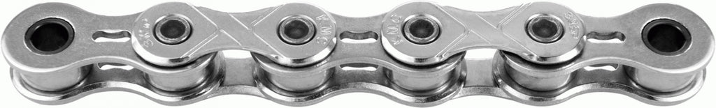KMC ketting X 101 is een top-performance ketting die geschikt is voor single speed, geïntegreerde versnellingsnaven, BMX, Baan en Fixed gear fietsen. De ketting heeft een afmeting van 1/2" X 1/8" en een pin lengte van 8 mm. Met 112 schakels biedt deze ketting een super rigide en duurzame constructie. De ketting is vernikkeld en heeft een mooie zilveren kleur.