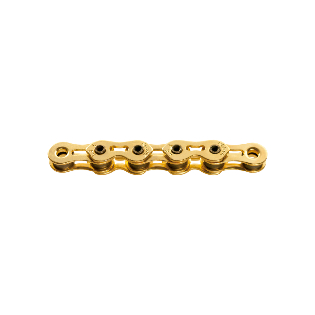 KMC ketting K1SL 1/8 Ti-N Gold, 100 schakels Description KMC, Chain, K1SL Wide Ti-N Gold, 100-glides, Gold, size: 1/2"x1/8", BMX / top class track-chain, with hollow pins and countersank plates, no drop off, ind. packed replaces item: BXK71SL1