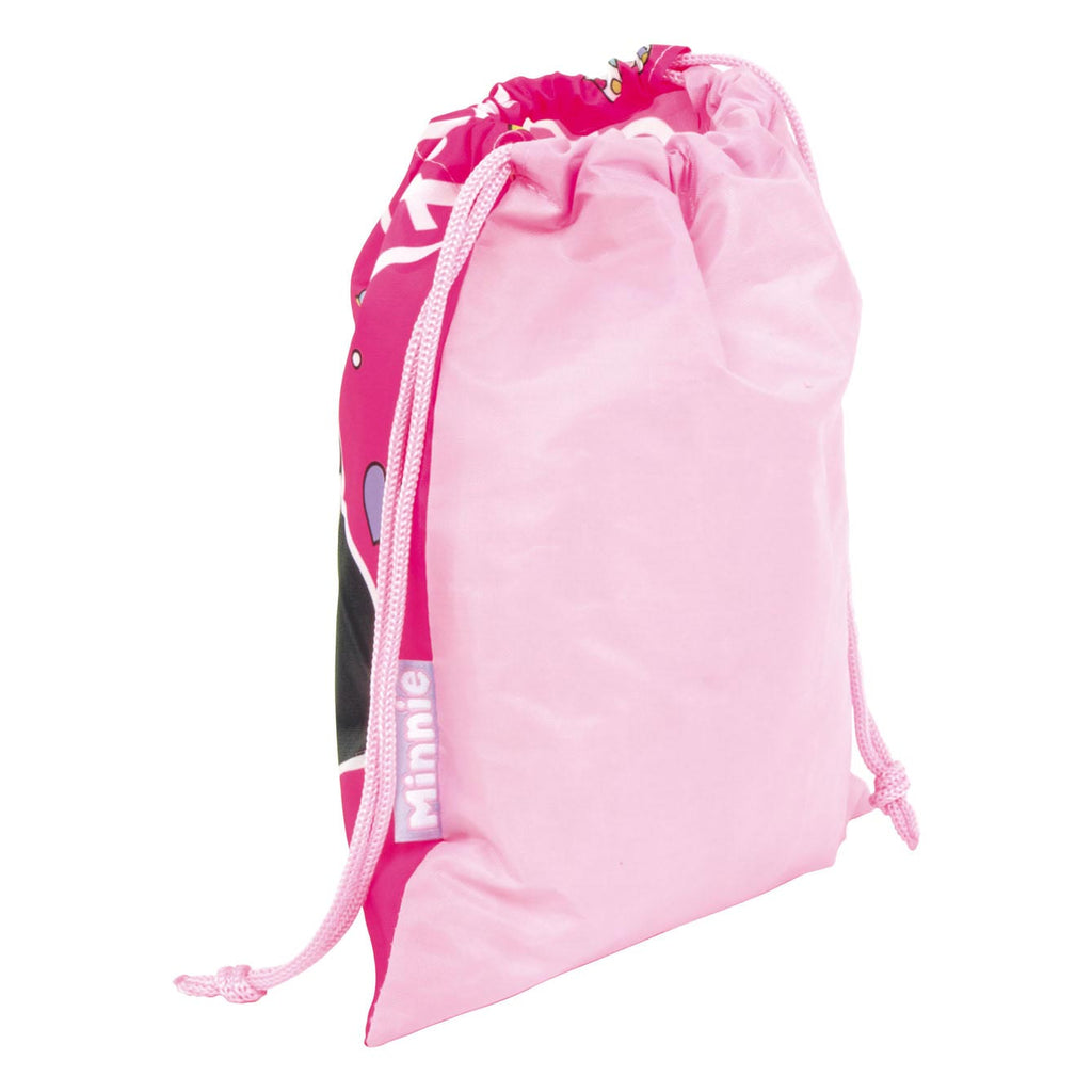 Deze vrolijke Minnie Mouse-knikkerzak is groot genoeg om al jouw mooiste knikkers in te bewaren en mee te nemen. De knikkertas is roze met aan de voorkant een print van Minnie en de Engelse quote ‘’Go For It’’. Met het trekkoord kun je de knikkerzak sluiten en dragen. Gemaakt van polyester en 26,5 x 21,5 centimeter groot. Geschikt voor kinderen vanaf 3 jaar.