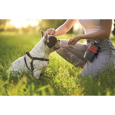 Het Kong Train And Treat Beloningszakje is een handig tasje om de snoepjes voor jouw hond onderweg mee te nemen. Dit tasje is enorm handig en de binnenkant is eenvoudig te bereiken. De binnenvoering is geschikt voor voeding en houdt de snoepjes schoon en droog. Eenvoudig te sluiten met het trekkoord en handig mee te nemen door de clip en karabijnhaak. Zo neem je het eenvoudig mee onderweg. Het zakje aan de voorkant biedt ruimte om wat extra's mee te nemen. Dit beloningszakje is ook handig om jouw Kong tot maat L mee te nemen!