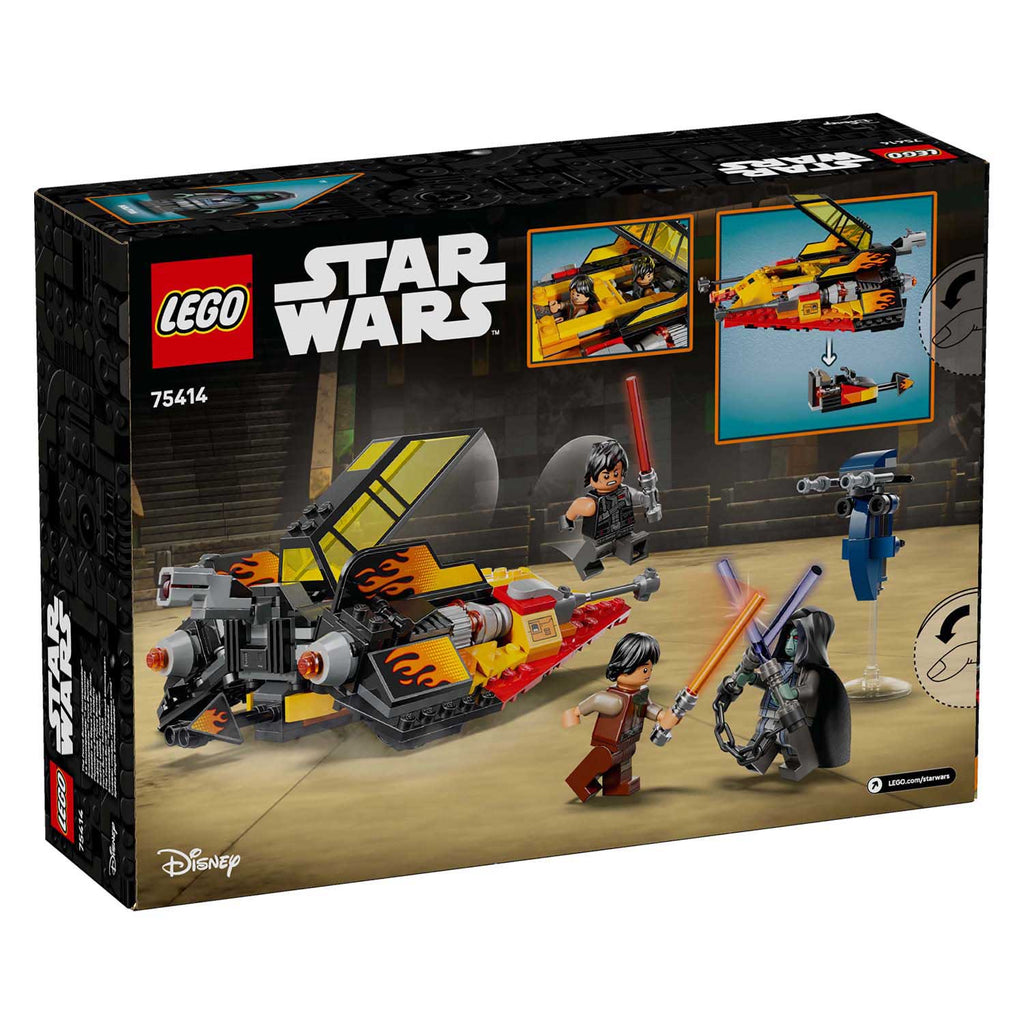 Bereid je voor op snelle actie met The Force Burner Snowspeeder (75414). Deze set is een leuk Star Wars™ cadeau voor jongens, meisjes en fans vanaf 7 jaar en heeft authentieke kenmerken van de unieke snowspeeder uit seizoen 2 van LEGO® Star Wars: Rebuild the Galaxy™. Het model is voorzien van opvallende vlammenstickers, een dubbele cockpit die open kan met een verborgen, afneembare speederbike en een noppenschieter aan de achterkant. Druk op de stoel achter in de cockpit (of op het hoofd van de LEGO minifiguur die erin zit) om de speederbike te lanceren. Deze bouwbare speelset bevat ook de allereerste LEGO Star Wars minifiguren van Sig Greebling, Darth Dev en Solitus. Elk personage is uitgerust met een lichtzwaard, inclusief het dubbele lichtzwaard van Solitus met een ketting. Bovendien heeft Solitus een coole STAP voor nog meer actie. De set bevat 349 onderdelen.