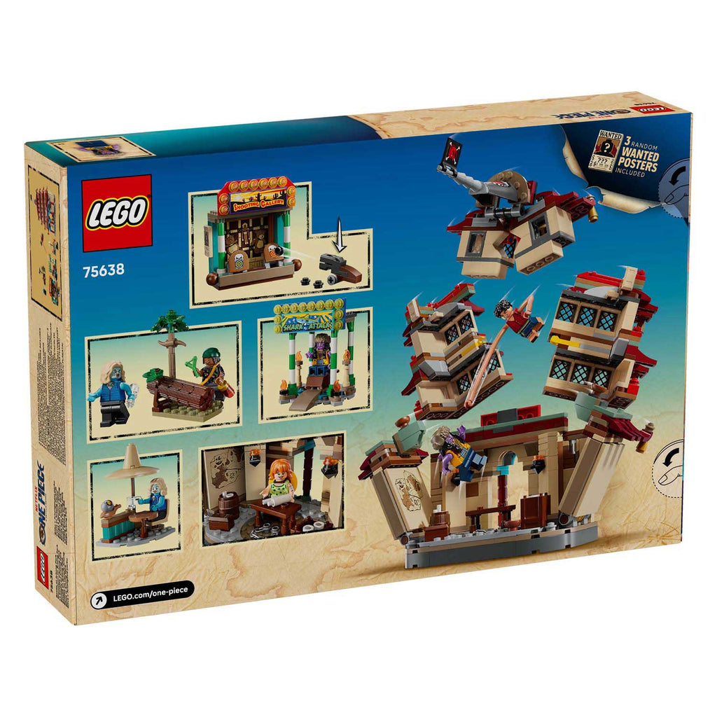 LEGO® ONE PIECE De strijd bij Arlong Park (75638) is speelgoed voor kinderen die van actie en avontuur houden. Met deze LEGO ONE PIECE set speel je de epische confrontatie tussen de Strohoedpiraten en de Arlong-piraten na. Het is een geweldig animecadeau voor jongens en meisjes vanaf 9 jaar. De bouwset wordt geleverd met minifiguren van Luffy (met onderdelen om zijn armen te verlengen), Nami, Usopp, Arlong en Chu. Kinderen kunnen de pagode tijdens de strijd laten instorten door er stevig op te drukken en de schiettent heeft leuke doelen waar ze met noppenschieters op kunnen richten. De schurk Arlong kan op een troon worden geplaatst in het haaiengebouw. Chu kan iets drinken bij de hut en in het bos staat een ketchupfles. Deze speelset bevat ook noppenschieters en accessoires, waaronder 3 'Wanted'-posters. Voor extra digitaal plezier kunnen bouwers inzoomen, modellen in 3D draaien en hun voortgang bijhouden met behulp van de intuïtieve LEGO Builder app. De set bevat 926 onderdelen.
