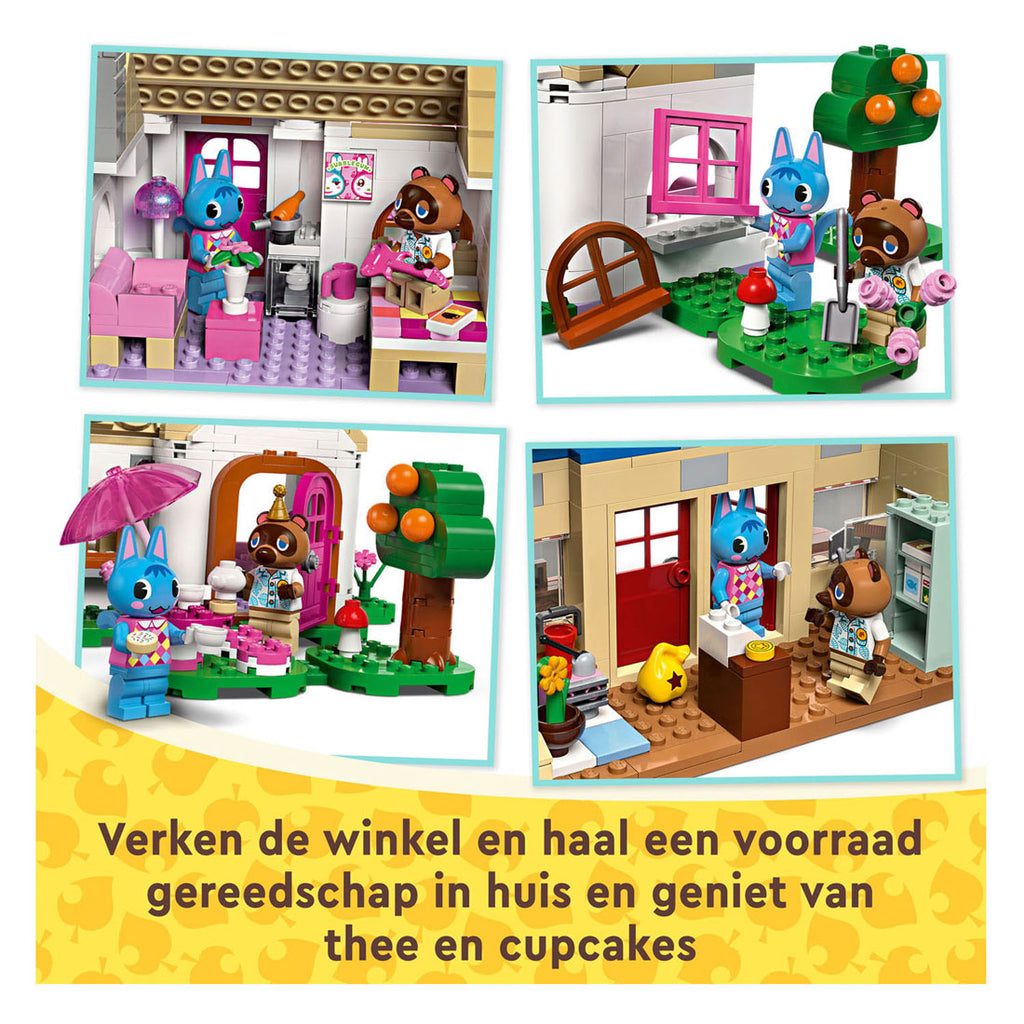 - Aanpasbaar kinderspeelgoed – bouwbaar speelgoed met minifiguren van Rosie en Tom Nook, 2 bekende Animal Crossing™ gebouwen, talloze accessoires en verwisselbare bouwplaten