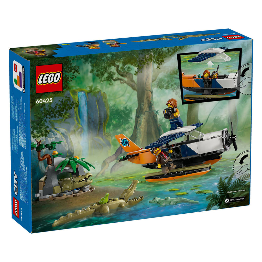 Verras je kleine avonturier met deze LEGO® City Jungleonderzoekers: watervliegtuig (60425) speelset voor kinderen vanaf 6 jaar met een speelgoedvliegtuig en een junglegrot. Er zijn ook 2 minifiguren van ontdekkingsreizigers, een kikker en 3 actiefiguren van krokodillen, waaronder een babykrokodil, voor fantasierijke verhalen. Dit LEGO onderzoekersspeelgoed is inclusief stapsgewijze gedrukte bouwinstructies en 3D-instructies in de LEGO Builder app - een digitale bouwpartner met intuïtieve zoom- en draaifuncties waarmee kinderen modellen van alle kanten kunnen bekijken tijdens het bouwen. LEGO City sets zijn creatieve cadeaus voor kinderen met coole speelgoedvoertuigen, realistische gebouwen en leuke personages voor fantasierijk speelplezier. Kinderen kunnen deze speelgoedset met jungledieren combineren met andere sets (apart verkrijgbaar) uit het LEGO City assortiment voor nog meer speelmogelijkheden. Speelgoedset met een watervliegtuig - verras een kleine avonturier met dit LEGO® City Jungleonderzoekers: watervliegtuig speelgoed voor jongens en meisjes vanaf 6 jaar Wat zit er in de doos? - dit creatieve bouwspeelgoed bevat een LEGO® watervliegtuig, een grotgedeelte in de jungle, minifiguren van een fotograaf en een LEGO piloot, een kikker en 3 krokodillen Bouwspeelgoed voor kinderen die van fantasierijk spel houden - kinderen genieten van een leuke bouwervaring voordat ze samen met de fotograaf en de piloot aan boord van het speelgoedvliegtuig gaan op een spannende krokodillensafari Avontuurlijk speelgoed met leuke accessoires - deze speelset voor kinderen bevat LEGO® minifiguuraccessoires om te doen alsof, waaronder een camera en een gedrukt landkaartelement Een LEGO® cadeau voor kinderen vanaf 6 jaar - geef deze avontuurlijke speelset cadeau voor de feestdagen of een andere gelegenheid aan kinderen die dol zijn op speelgoedvliegtuigen Inclusief een combineerbare kaarttegel - verbind de speelgoedlandkaart die bij deze set wordt geleverd met de landkaarten uit 3 andere speelsets (apart verkrijgbaar) om een gids voor de LEGO® City jungle te creëren Een stad waar alles kan - LEGO® City is een plek waar kinderen hun grenzeloze fantasie de vrije loop kunnen laten met gebouwen, voertuigen en inwoners die hen motiveren om te bouwen, creëren, ontdekken en spelen Afmetingen - het vliegtuig in deze 177-delige LEGO® City set is ca. 8 cm hoog, 18 cm lang en 16 cm breed