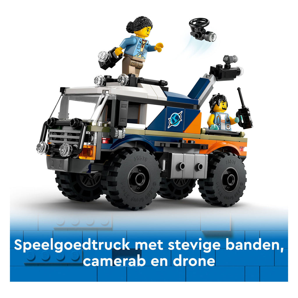 Stimuleer de avontuurlijke geest van je kind met de LEGO® City Jungleonderzoekers: offroad truck bouwset (60426) voor kinderen vanaf 6 jaar. Deze coole speelgoedauto met robuuste banden en een beweegbare camera neemt je jonge ontdekkingsreiziger mee naar het hart van de jungle voor een onvergetelijke tijgersafari. De set bevat ook een junglegrot, een speelgoeddrone, 3 minifiguren van ontdekkingsreizigers en een tijgerfiguur. Dit LEGO junglespeelgoed is inclusief stapsgewijze gedrukte bouwinstructies en 3D-instructies in de LEGO Builder app - een digitale bouwpartner met intuïtieve zoom- en draaifuncties waarmee kinderen modellen van alle kanten kunnen bekijken tijdens het bouwen. LEGO City sets zijn geweldige december- en verjaardagscadeaus voor kinderen met coole voertuigen, realistische gebouwen en leuke personages. Kinderen kunnen deze LEGO City speelgoedset combineren met andere sets (apart verkrijgbaar) uit het LEGO City assortiment voor nog meer speelmogelijkheden. Speelgoedset met truck en junglethema - verras je jonge natuurliefhebber met deze LEGO® City Jungleonderzoekers: offroad truck speelset voor jongens en meisjes vanaf 6 jaar Wat zit er in de doos? - deze LEGO® Jungleonderzoekers speelgoedset bevat alles wat kinderen nodig hebben om een offroad truck, een junglegrot en 3 minifiguren van avonturiers te bouwen, plus een LEGO speelgoedfiguur van een tijger Creatief bouwspeelgoed - kinderen genieten van een leuke bouwervaring voordat ze samen met de ontdekkingsreiziger in de jungletruck stappen om op een tijgersafari te gaan Natuurspeelgoed met leuke accessoires - deze speelset voor kinderen bevat LEGO® minifiguuraccessoires om te doen alsof, waaronder een landkaart, een verrekijker, een camera en een walkietalkie Een LEGO® cadeautip voor kinderen vanaf 6 jaar - geef deze LEGO City speelset met junglethema cadeau voor de feestdagen of zomaar tussendoor aan kinderen die dol zijn op speelgoedvoertuigen Inclusief een combineerbare kaarttegel - verbind de speelgoedlandkaart die bij deze set wordt geleverd met de landkaarten uit 3 andere speelsets (apart verkrijgbaar) om een gids voor de LEGO® City jungle te creëren Een stad waar alles kan - LEGO® City is een plek waar kinderen hun grenzeloze fantasie de vrije loop kunnen laten met gebouwen, voertuigen en inwoners die hen motiveren om te bouwen, creëren, ontdekken en spelen Afmetingen - de truck in deze 314-delige LEGO® City set is ca. 11 cm hoog, 15 cm lang en 6 cm breed