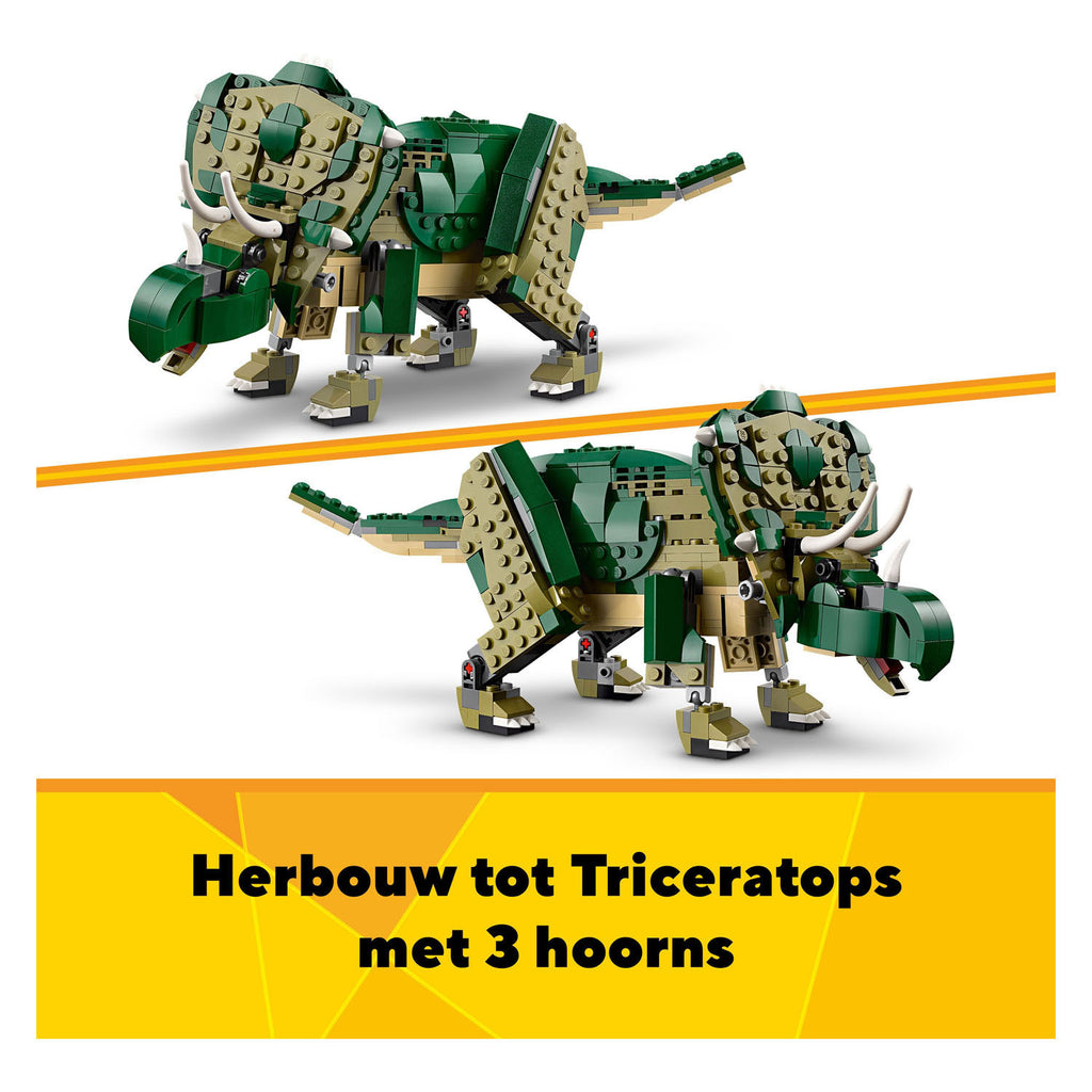 - 3 speelgoed dinosaurussen in 1 set – jongens en meisjes vanaf 9 jaar kunnen 3 mogelijke dierenmodellen bouwen en herbouwen met dezelfde set stenen in deze LEGO Creator T. rex dino speelset