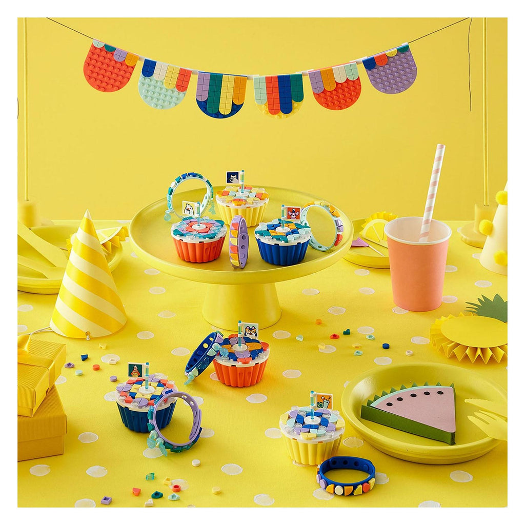 Raak de juiste snaar bij creatieve feestneuzen met de LEGO DOTS Ultieme feestset (41806). Deze knutselset voor kinderen vanaf 8 jaar biedt ouders een mooie gelegenheid om een groep kinderen bezig te houden met creatieve activiteiten, knutselen en spelletjes op een kinderfeestje.Deze creatieve feestkit van LEGO DOTS bestaat uit 6 aanpasbare cupcakes met een topping die afneembaar is en waaronder een kleine opbergruimte verscholen zit. Daarnaast zijn er 6 armbandjes, 6 onderdelen die samen een slinger vormen en touw om de slinger op te hangen, plus een heleboel verschillende steentjes, vlaggetjes, bedeltjes en stickers die kinderen kunnen gebruiken om zichzelf te uiten. Bij de set zijn ook leuke feestideeën inbegrepen, om ouders te helpen om er de leukste dag van te maken voor hun kind.Met DOTS sets leren kinderen om hun eigen stijl te laten zien. Ze ontdekken zo spelenderwijs hoe leuk het is om met LEGO speelgoed aan de slag te gaan. Deze leuke knutselset is ideaal voor een creatieve groepsactiviteit op een verjaardagsfeest, met een leuk cadeautje dat na afloop mee naar huis mag.