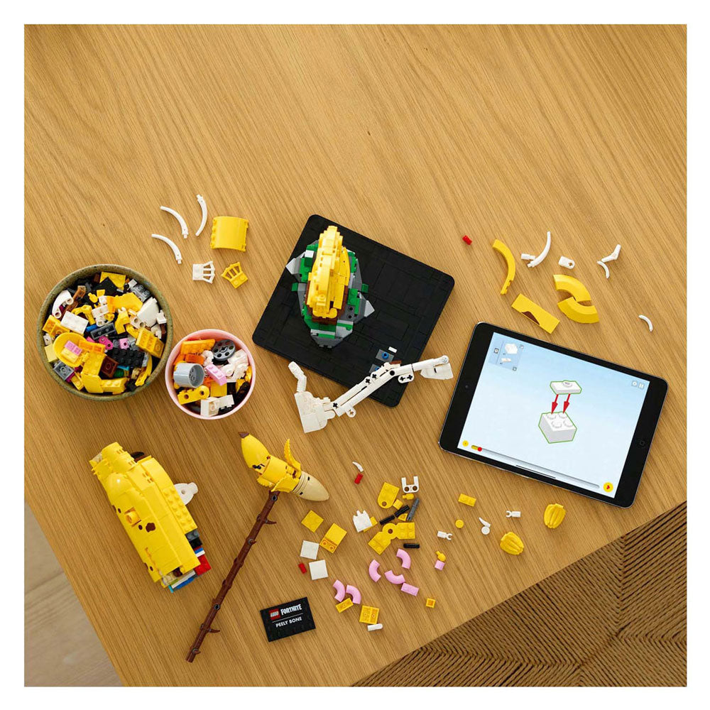 Breng een bekende figuur uit de videogame tot leven met deze geweldige LEGO® Fortnite® Peely Bone (77072) bouwset voor volwassenen, boordevol leuke details die bij fans in de smaak zullen vallen. De set is geïnspireerd op de Fortnite videogame en laat gamers een indrukwekkend displaymodel bouwen van de populaire bananenoutfit.Fortnite fans kunnen helemaal opgaan in avonturen in de echte wereld terwijl ze deze LEGO versie van Peely Bone in elkaar zetten �?? half banaan en half skelet. Ze zullen het geweldig vinden om de beweegbare armen en polsen van het model te ontdekken, plus de coole accessoires waaronder een Peely Pick Pickaxe, Paint Launcher en Banana Bag Back Bling.De set bevat ook een naamplaatje en een displaystandaard, waardoor het voor gamers gemakkelijk is om de bananenfiguur met trots neer te zetten. Dit hilarische model is een leuk cadeau waar gamers en Fortnite fans en geeft elke kamer een leuk LEGO tintje.