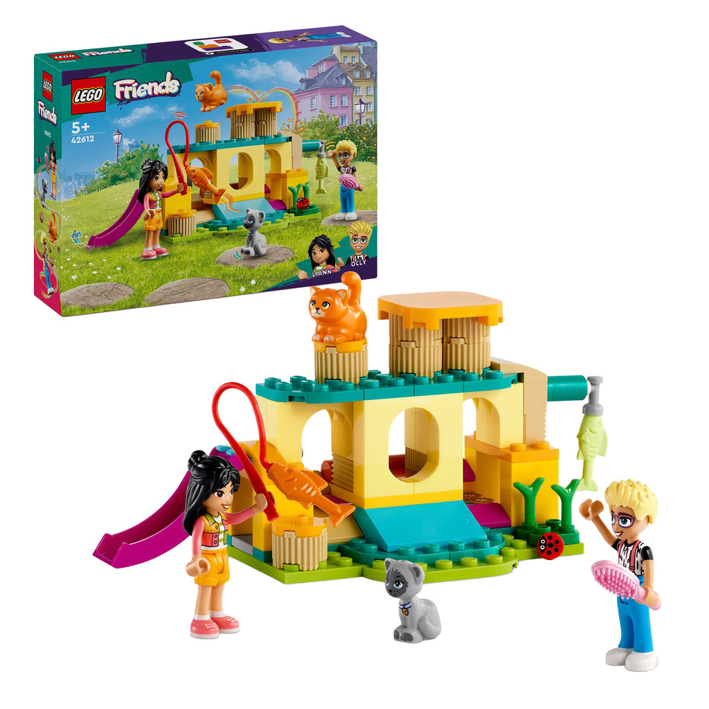 Kattenliefhebbers kunnen veel plezier beleven met de LEGO Friends Kattenspeeltuin set (42612) voor meisjes en jongens vanaf 5 jaar die van dieren speelgoed houden. De set bevat een bouwbare speeltuin, 2 LEGO Friends mini poppetjes, 2 speelgoed dieren figuren en accessoires voor het verzorgen van huisdieren, waaronder een speelgoed vis, kattenkruid, eten en een kattenbak.Inspireer urenlang speelplezier waarbij kinderen verhalen naspelen in de kattenspeeltuin. Ze zullen het geweldig vinden om de LEGO Friends personages Liann en Olly te helpen spelen met de poezen. Er is een glijbaan en een krabpaal, plus eten en drinken en zelfs een kattenbak waar kinderen kattenpoep in kunnen laten verschijnen met een hendel!Op zoek naar een leuk cadeau? Er zijn diverse bouwsets voor kinderen die van rollenspellen houden in het LEGO Friends universum. Geef je kind een eenvoudig en intuïtief bouwavontuur met de LEGO Builder app. Hiermee kan het inzoomen en modellen in 3D draaien, sets opslaan en de voortgang bijhouden.Afmetingen: deze LEGO set is ca. 7 cm hoog, 16 cm breed en 7 cm diep.Bevat 87 onderdelen.