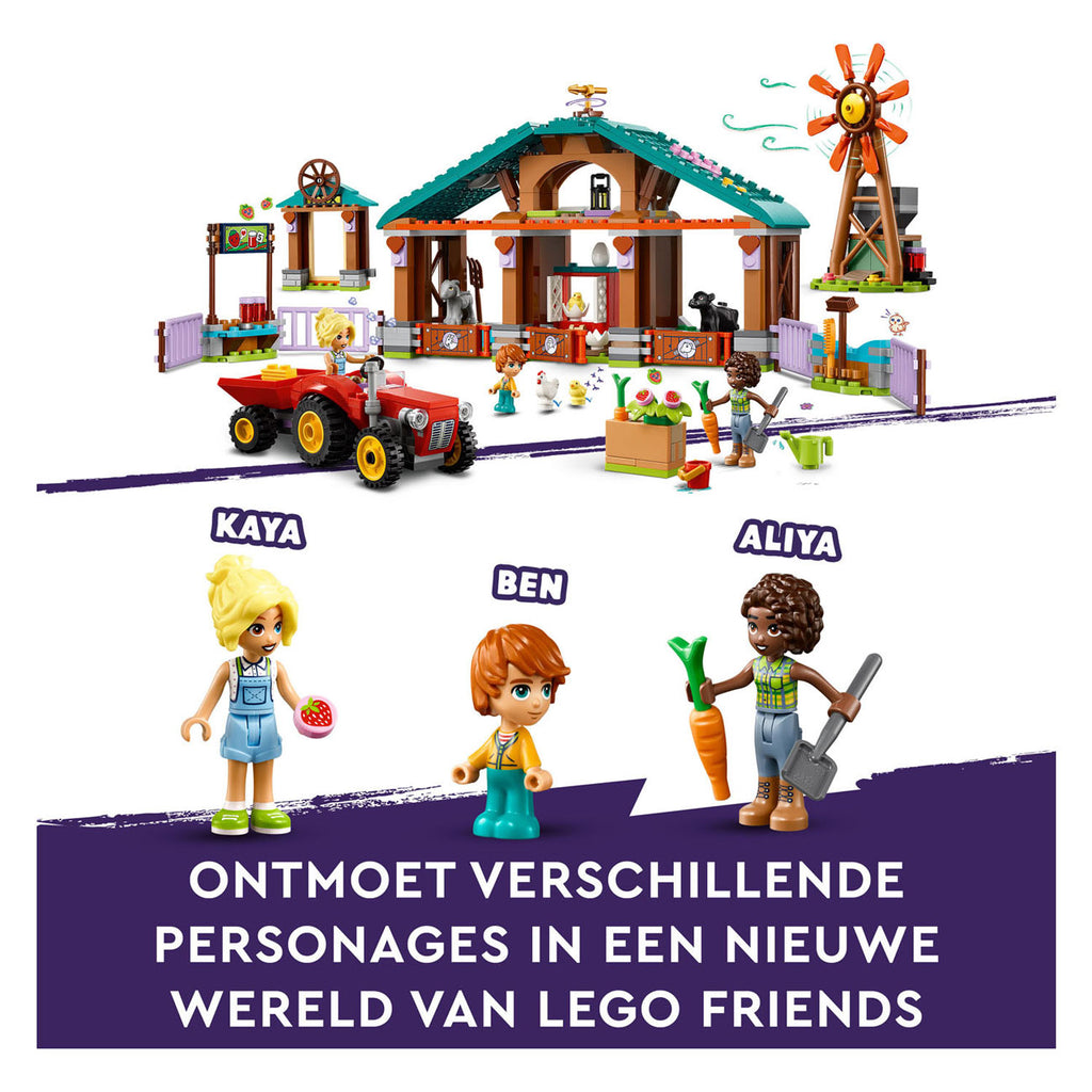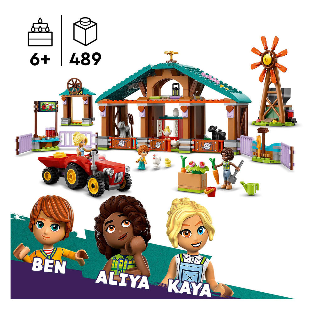 Creatief spelen is heel leuk met deze LEGO Friends Boerderijdierenopvang (42617) set voor meisjes en jongens vanaf 6 jaar. Kinderen kunnen hun eigen verhalen bedenken waarin ze groenten oogsten, aardbeienjam maken en de speelgoed dieren verzorgen. De LEGO boerderij set bevat 3 figuren plus een geit, een koe, een kip en 2 kuikens. Het boerderijgebouw kan open en er zijn aparte ruimtes voor de dieren figuren.Deze LEGO Friends set voor meisjes en jongens bevat een bouwbare speelgoed boerderij, tractor en windmolen. De windmolen heeft een leuke functie waarbij de lege potten in de machine gaan en er weer uit komen als ze zijn gevuld met jam. Accessoires zijn wortels, aardbeien, potten, een hooivork, borstel, schop, eieren, hooibergen en een lantaarn. Deze bouwset met LEGO Friends mini poppetjes is een geweldig cadeau voor kinderen die van rollenspellen houden om te geven met een speciale gelegenheid of zomaar.Deze speelgoed boerderijdieren set is inclusief de LEGO Builder app, die kinderen begeleidt op een intuïtief bouwavontuur: inzoomen, modellen draaien in 3D, sets opslaan en hun voortgang bijhouden.Afmetingen: deze set is ca. 14 cm hoog, 21 cm breed en 23 cm diep.Bevat 489 onderdelen.