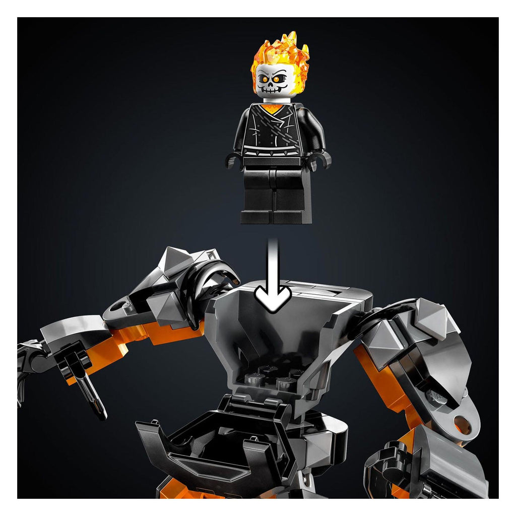 Verras kinderen vanaf 7 jaar met geweldige motoravonturen met de supergrote LEGO Marvel Ghost Rider Mech & motor (76245) set met bouwbaar superhelden speelgoed.Dit LEGO Marvel constructie speelgoed bestaat uit een Ghost Rider mecha actiefiguur, een uitvergrote motor waar de mecha op kan zitten en een LEGO minifiguur van Ghost Rider. Kinderen plaatsen het personage in de cockpit van de Ghost Rider mecha. De verstelbare mecha actiefiguur heeft beweegbare armen, benen en handen, waardoor hij in diverse poses kan worden neergezet voor eindeloze speel- en displaymogelijkheden. De afneembare ketting nodigt kinderen uit om fantasierijke actieverhalen te bedenken, terwijl ze met de supergrote mecha op zoek gaan naar slechteriken. De speelgoedmotor kan zelfstandig blijven staan en is voorzien van uitlaatvlammen. Voor extra digitaal plezier heeft de LEGO Builder app intuïtieve zoom- en draaifuncties waarmee kinderen hun LEGO superhelden set in 3D kunnen bekijken tijdens het bouwen.Het uitgebreide assortiment LEGO Marvel constructie speelgoed biedt kinderen eindeloze fantasierijke bouw- en speelmogelijkheden. Deze LEGO set is een origineel Marvel verjaardagscadeau voor kinderen vanaf 7 jaar die helemaal weg zijn van superhelden.Afmetingen: de motor is zonder de mecha ca. 10 cm hoog, 30 cm lang en 7 cm breed.Bevat 264 onderdelen.