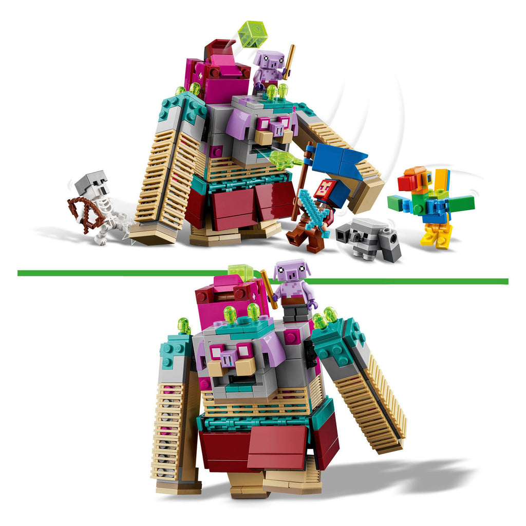 Het Duel met de Verslinder (21257) is de allereerste LEGO Minecraft Legends set. Met de meest weerzinwekkende (en meest populaire!) Minecraft actiefiguur in een avontuur om zelf te bouwen.Deze LEGO Minecraft set speelt zich af in de nieuwe wereld van Minecraft Legends en bevat een van de eindbazen uit de game: de Verslinder. De grote bouwbare figuur heeft lange, zwaaiende armen en een lichaam vol korsten, littekens, zweren en schimmels. Met een druk op de knop kan de Verslinder braaksel uit zijn bek afvuren en slijm uit zijn rugzak lanceren. Er is ook een figuur van een Minecraft boswachter held met authentieke elementen uit de Minecraft game: een vlag, cape, diamanten zwaard en luit. De boswachter rijdt op een Grote snavel en voert het bevel over zijn bondgenoten �?? een skelet en een keisteengolem.Voor extra digitaal plezier kunnen bouwers met de LEGO Builder app inzoomen, modellen in 3D draaien en hun voortgang bijhouden. Dit actie speelgoed is een geweldig cadeau voor Minecraft spelers van 8 jaar en ouder.Afmetingen: de Verslinder is ca. 12 cm hoog.Bevat 402 onderdelen.
